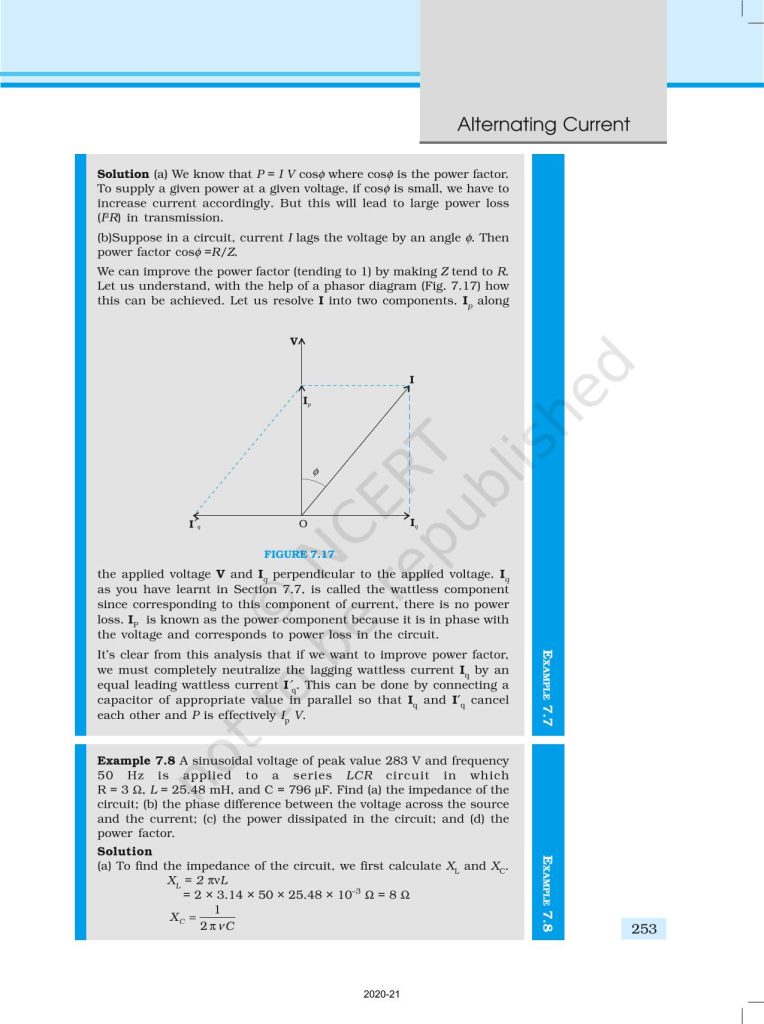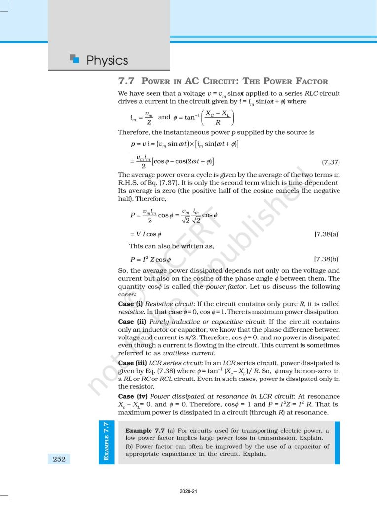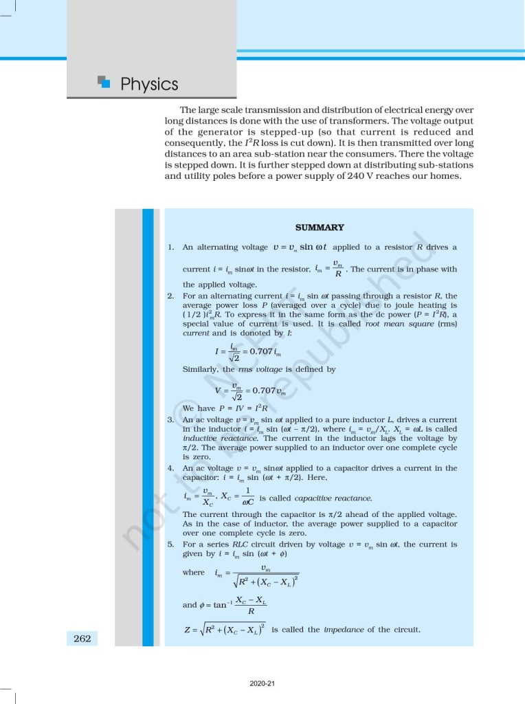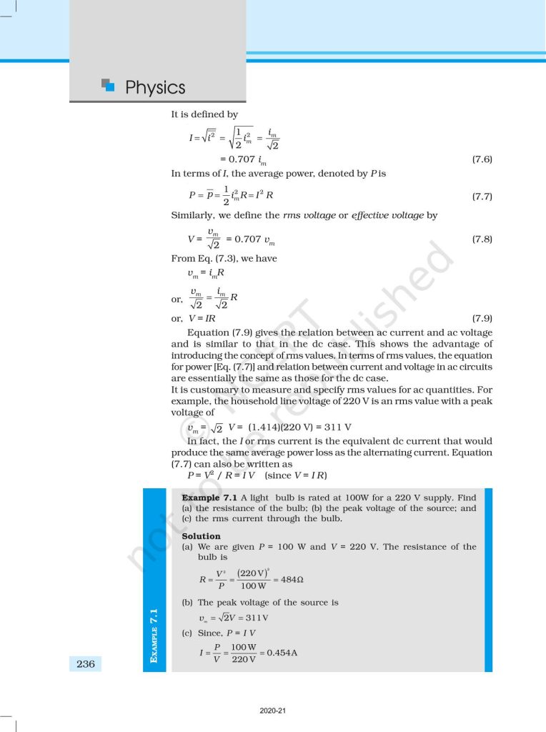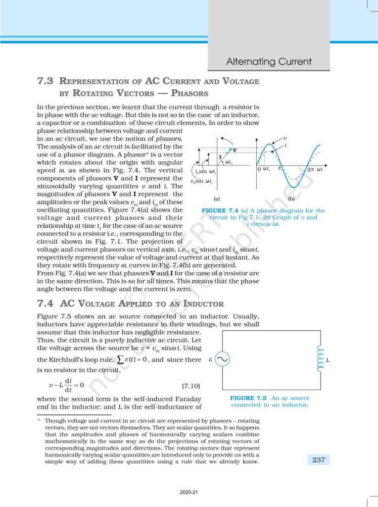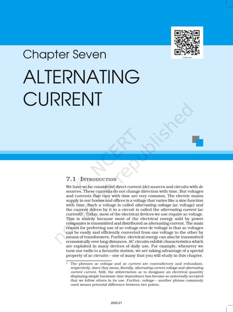 NCERT Book for Class 12 Physics Part 1 – (Chapter 7 – Alternating Current)
