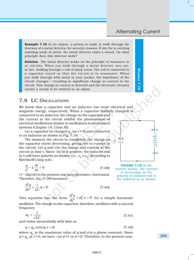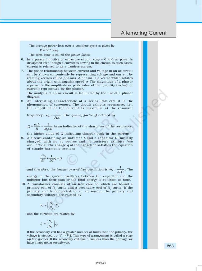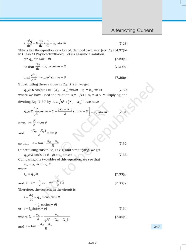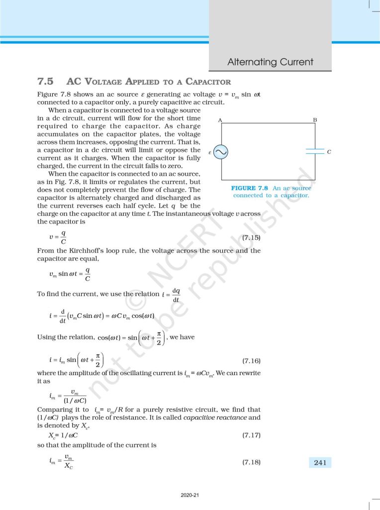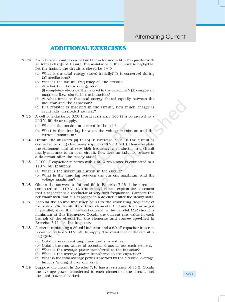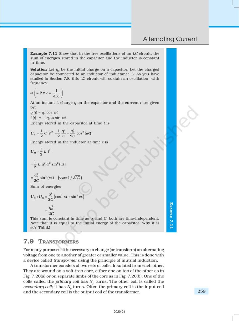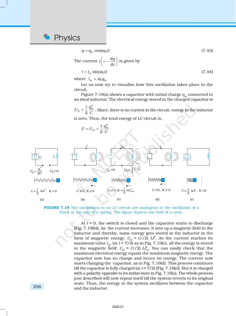 NCERT Book for Class 12 Physics Part 1 – (Chapter 7 – Alternating Current)