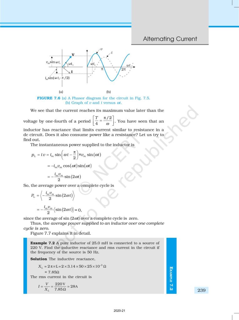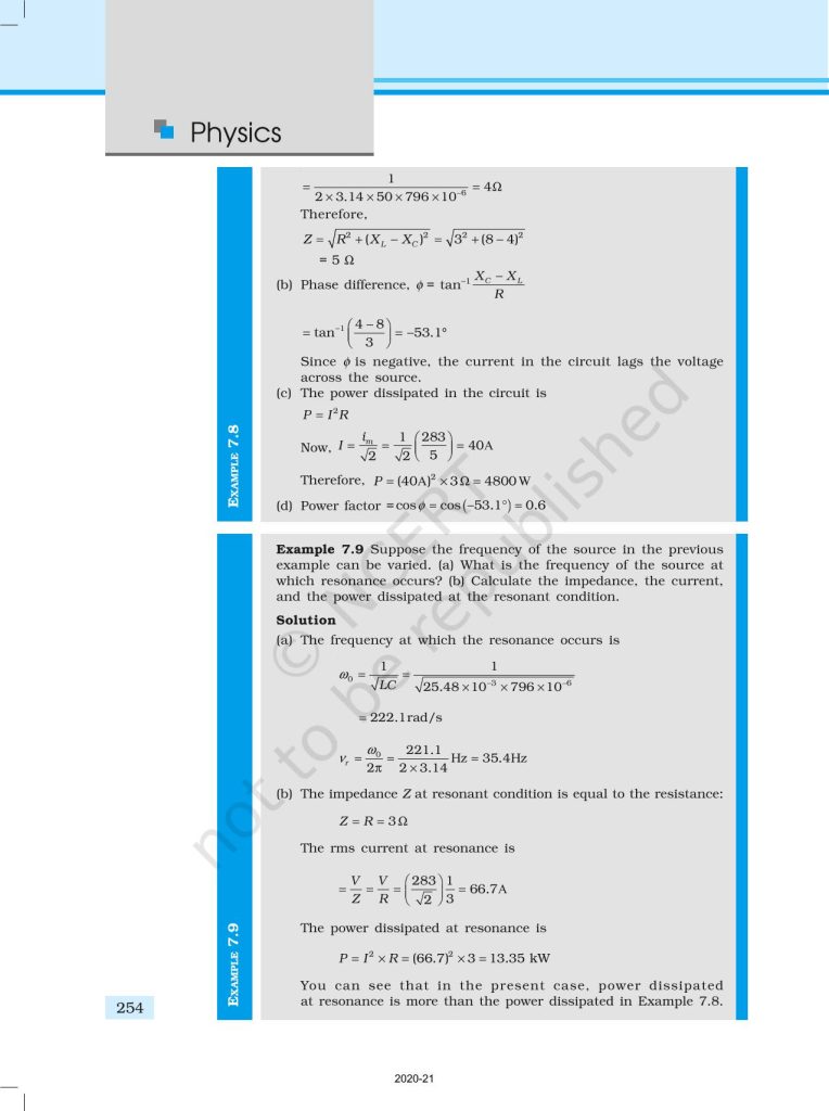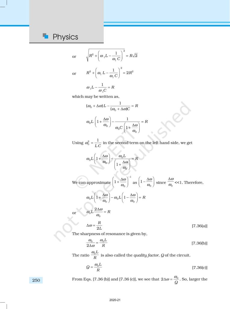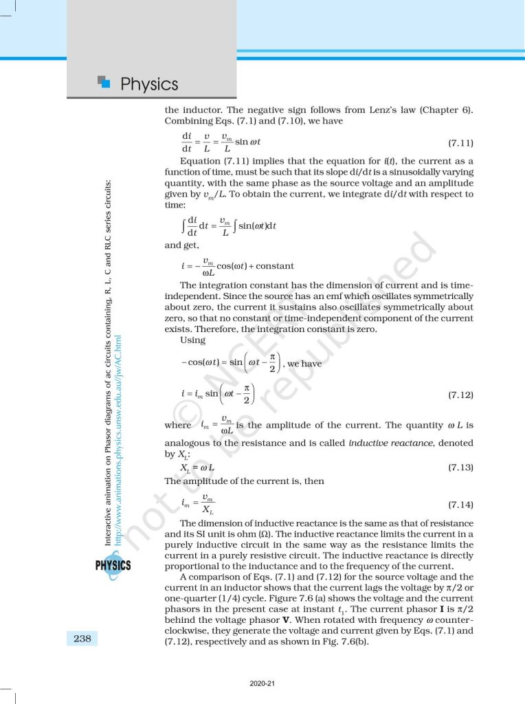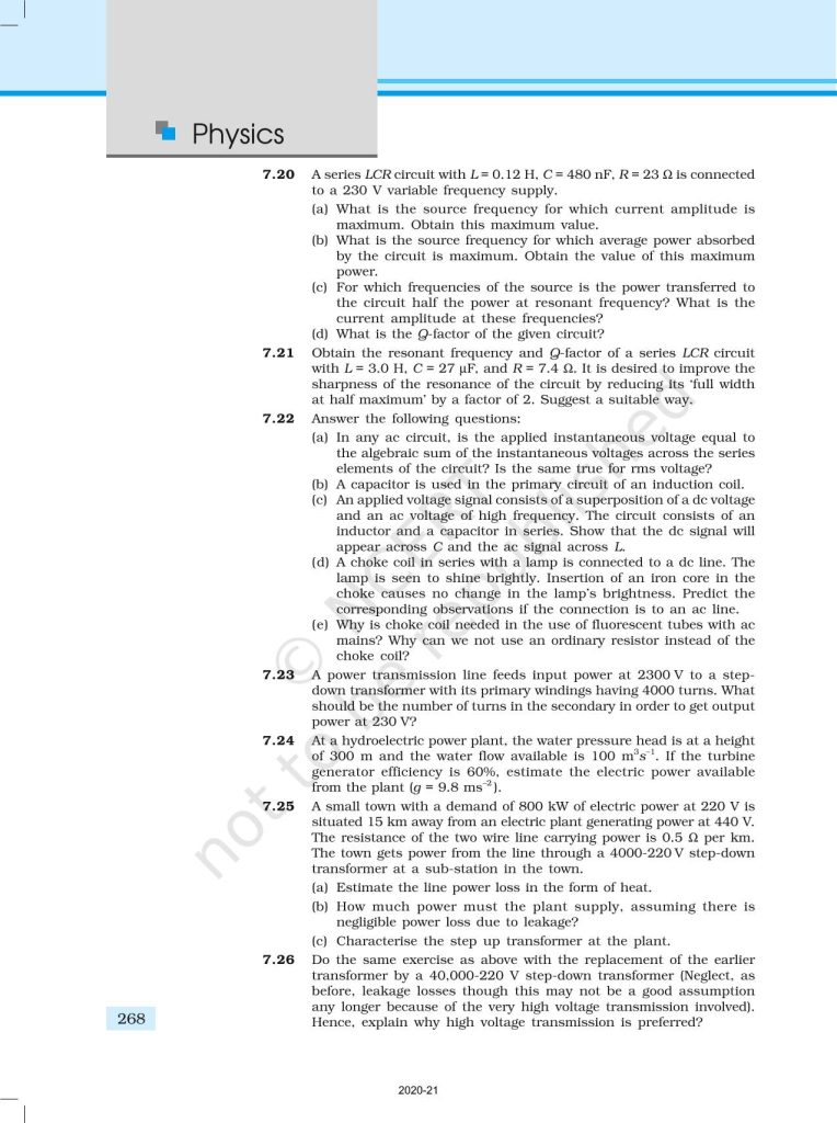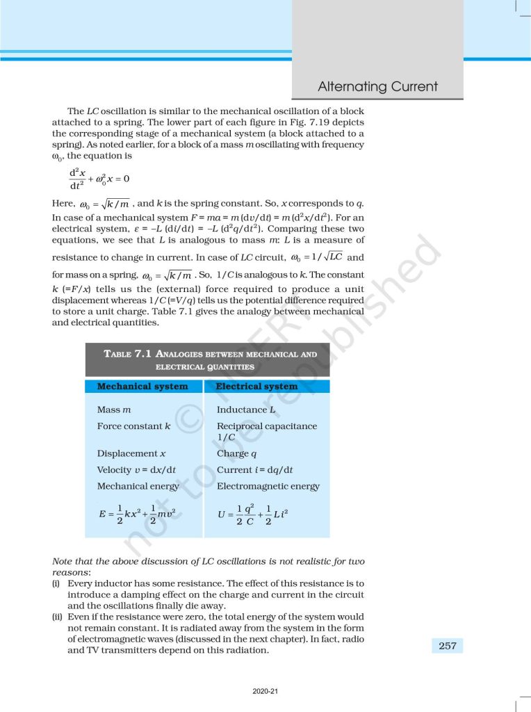 NCERT Book for Class 12 Physics Part 1 – (Chapter 7 – Alternating Current)