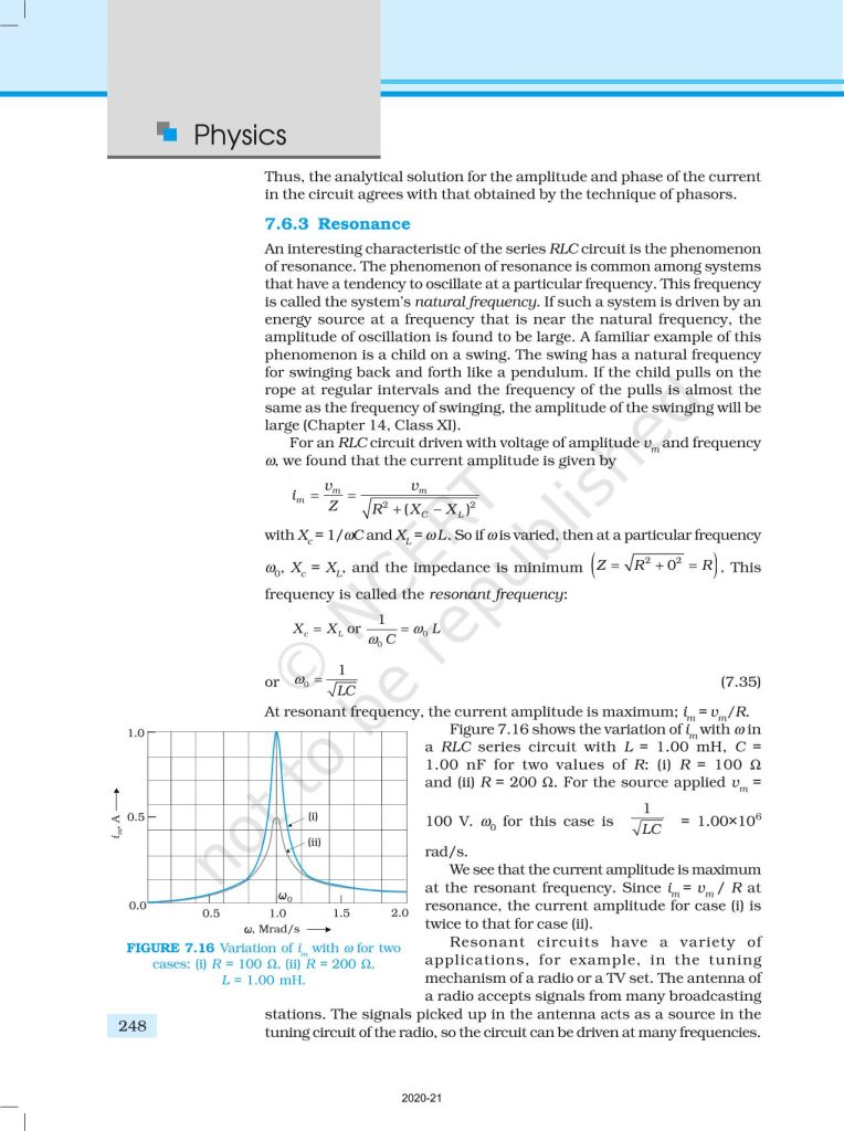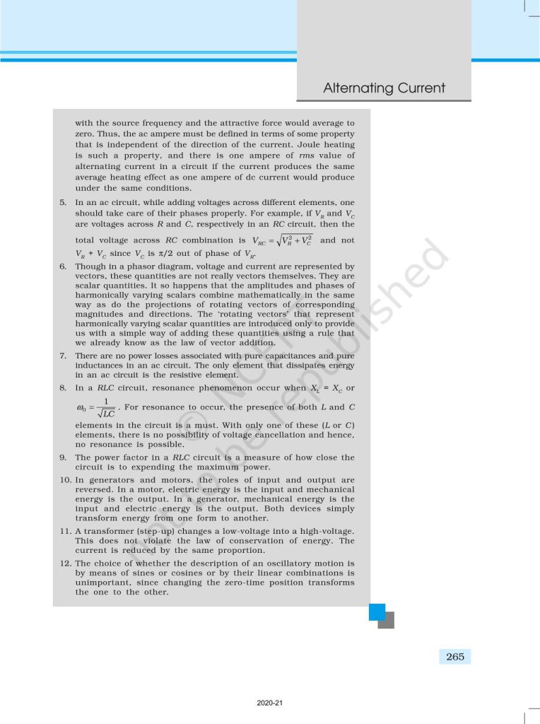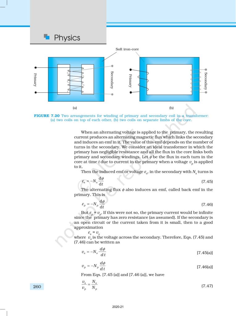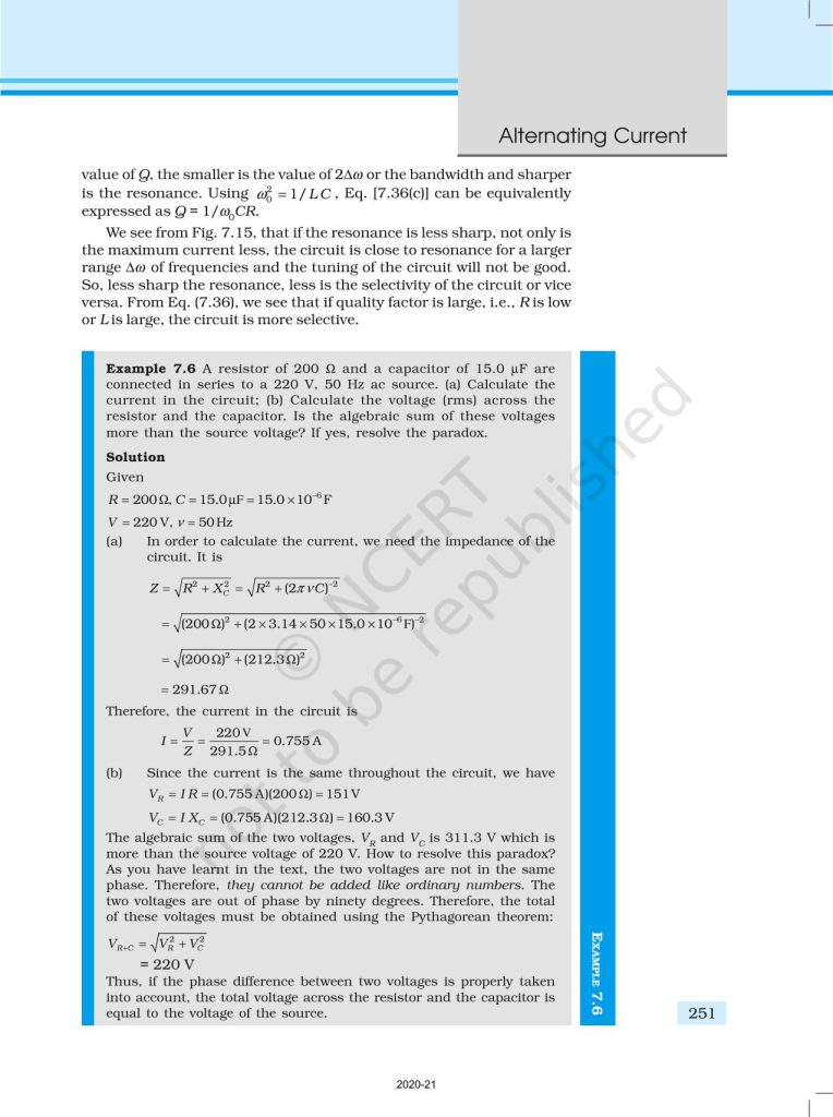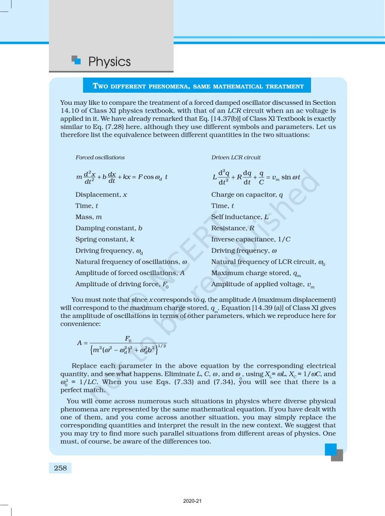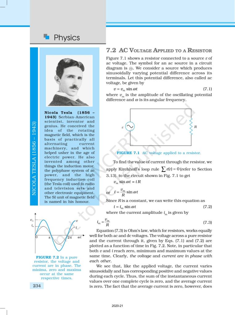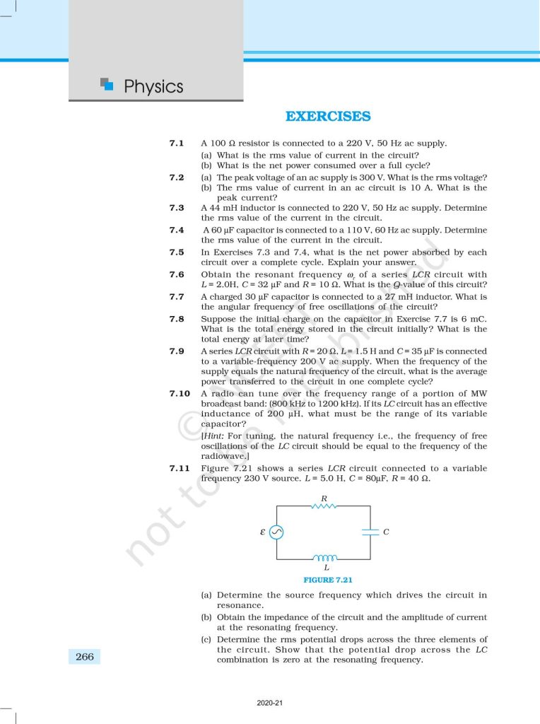 NCERT Book for Class 12 Physics Part 1 – (Chapter 7 – Alternating Current)