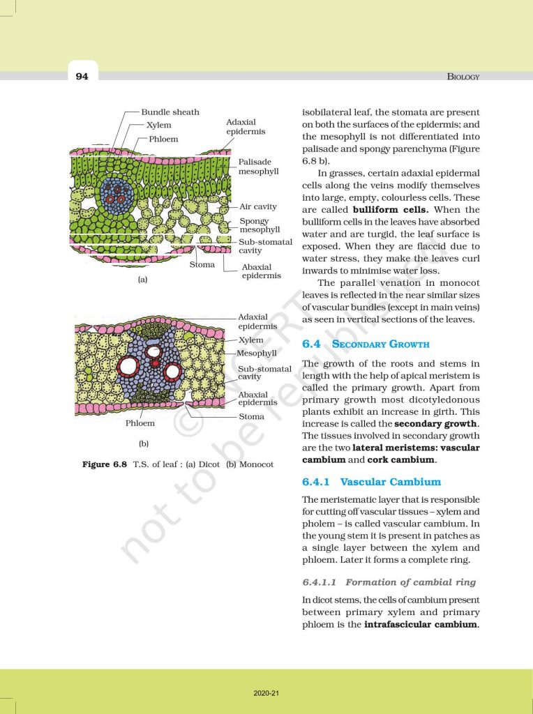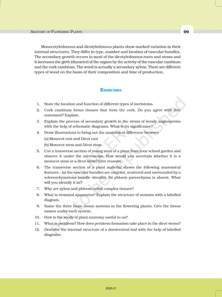 NCERT Book for Class 11 Biology – (Chapter 6 – Anatomy of Flowering Plants)