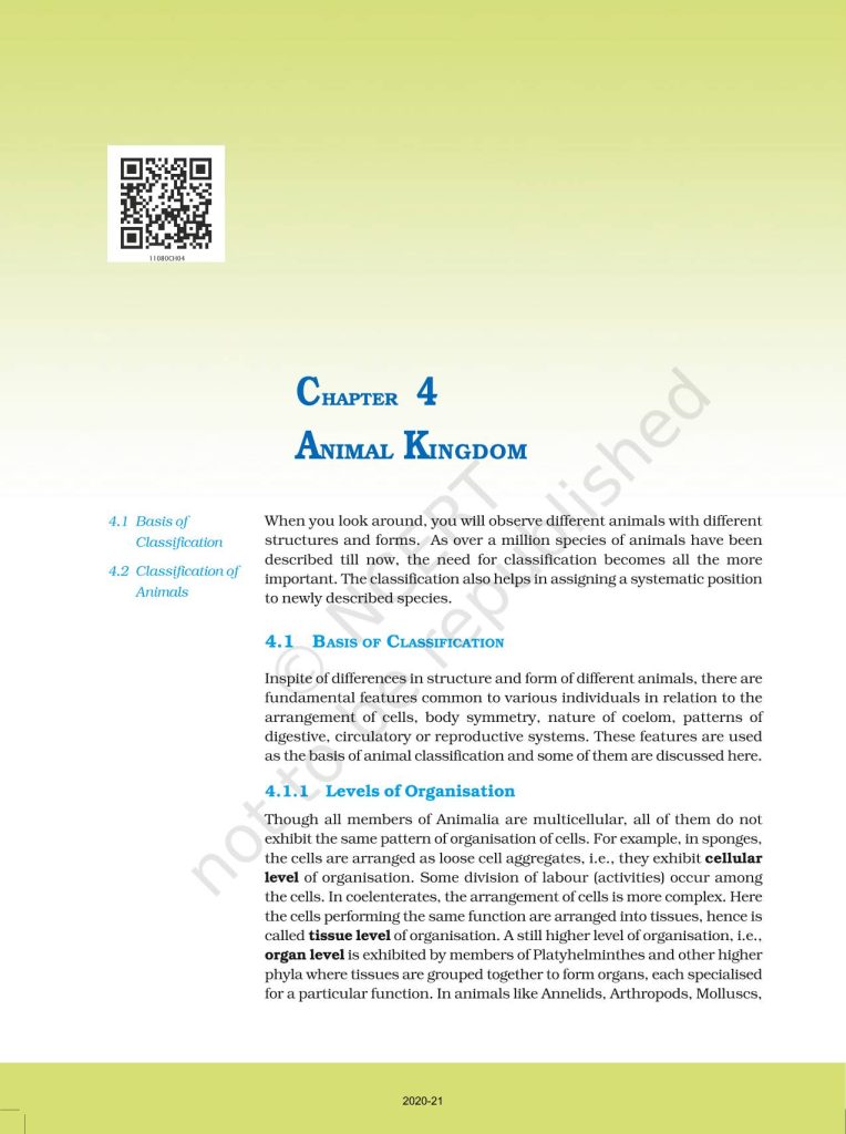 NCERT Book for Class 11 Biology – (Chapter 4 – Animal Kingdom)