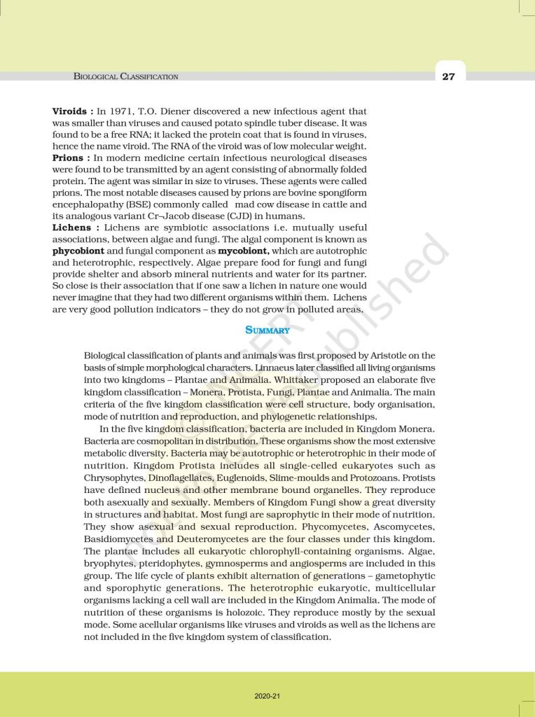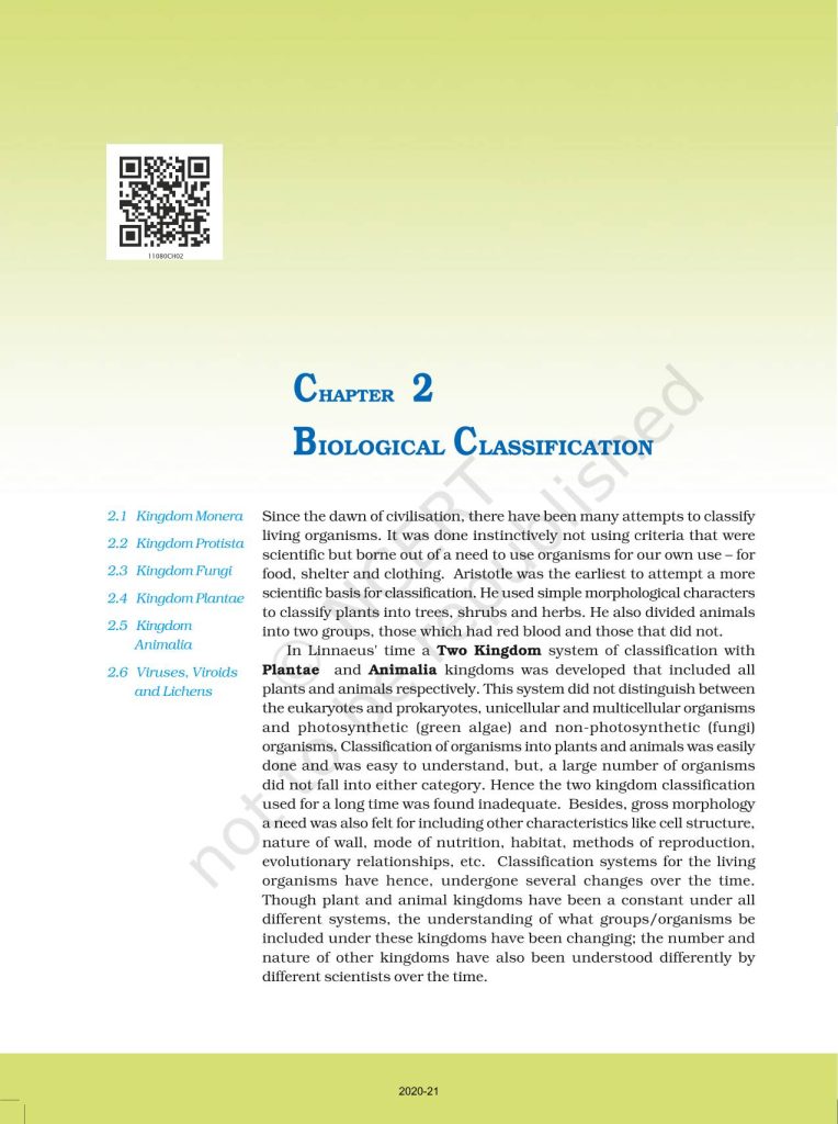 NCERT Book for Class 11 Biology – (Chapter 2 – Biological Classification)