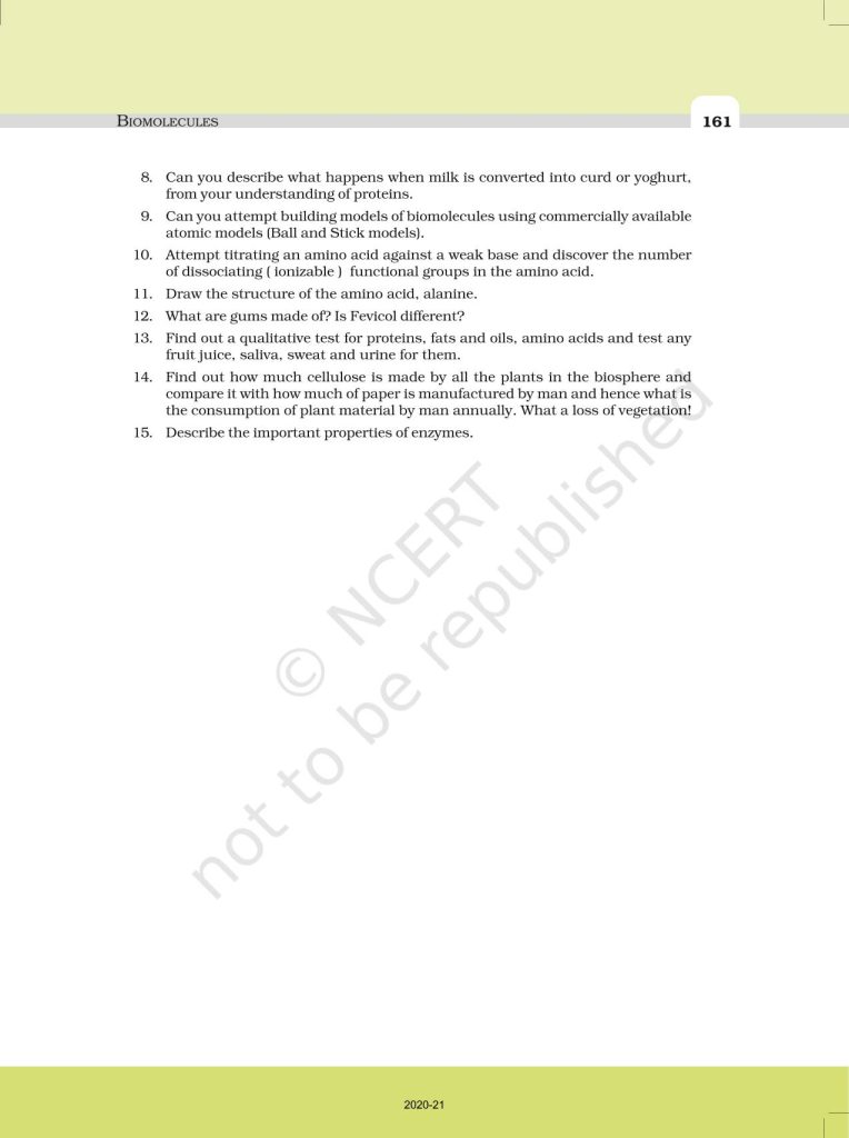 NCERT Book for Class 11 Biology – (Chapter 9 – Biomolecules)