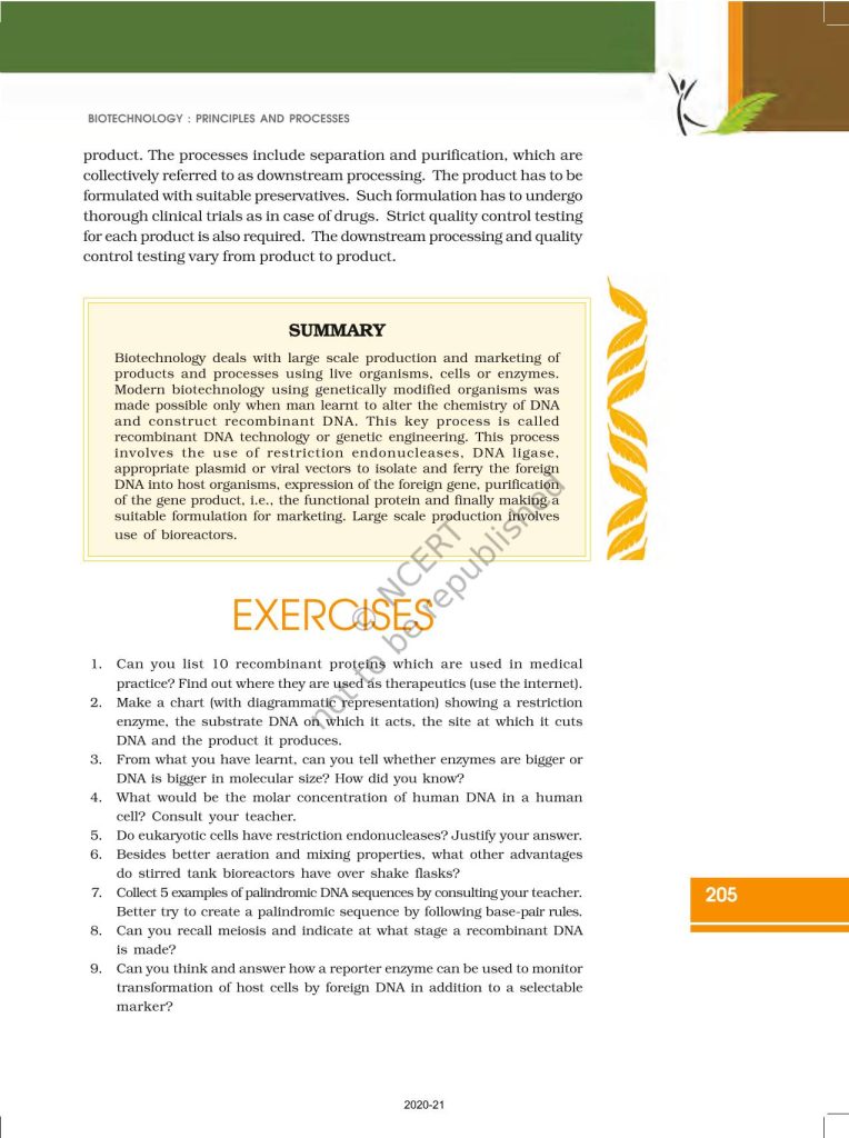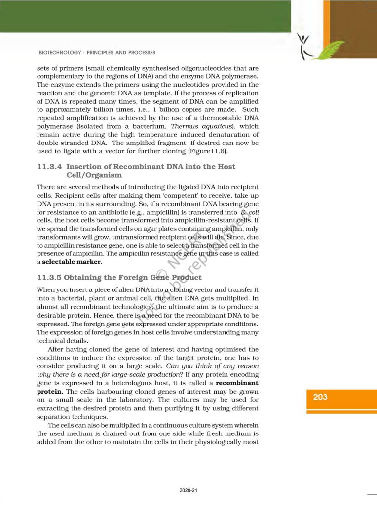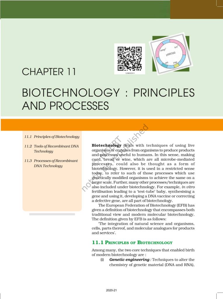 NCERT Book for Class 12 Biology – (Chapter 11 – Biotechnology: Principles And Processes)