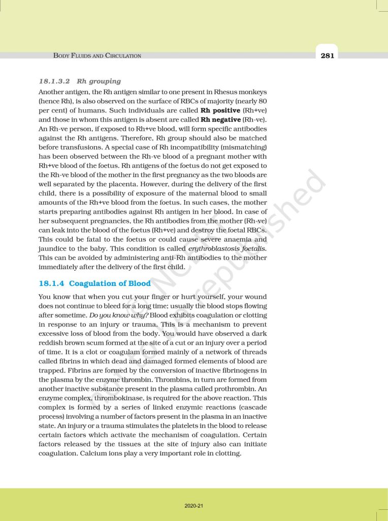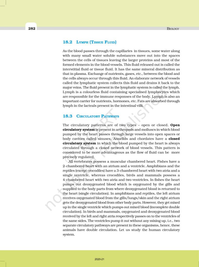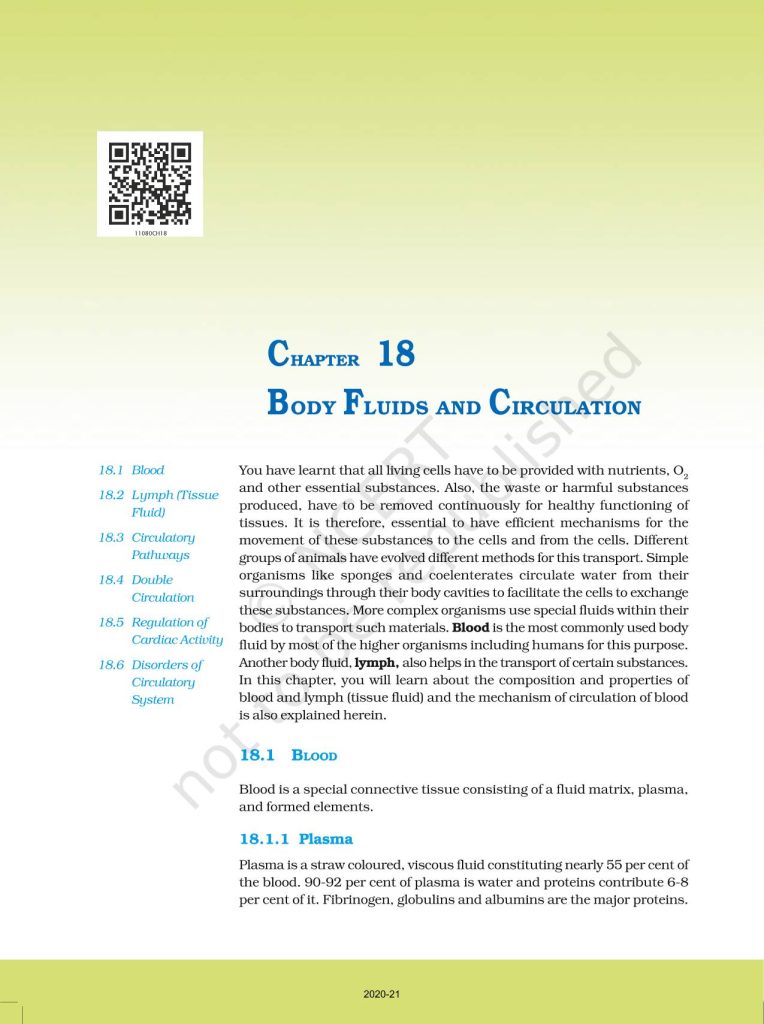 NCERT Book for Class 11 Biology – (Chapter 18 – Body Fluids And Circulation)