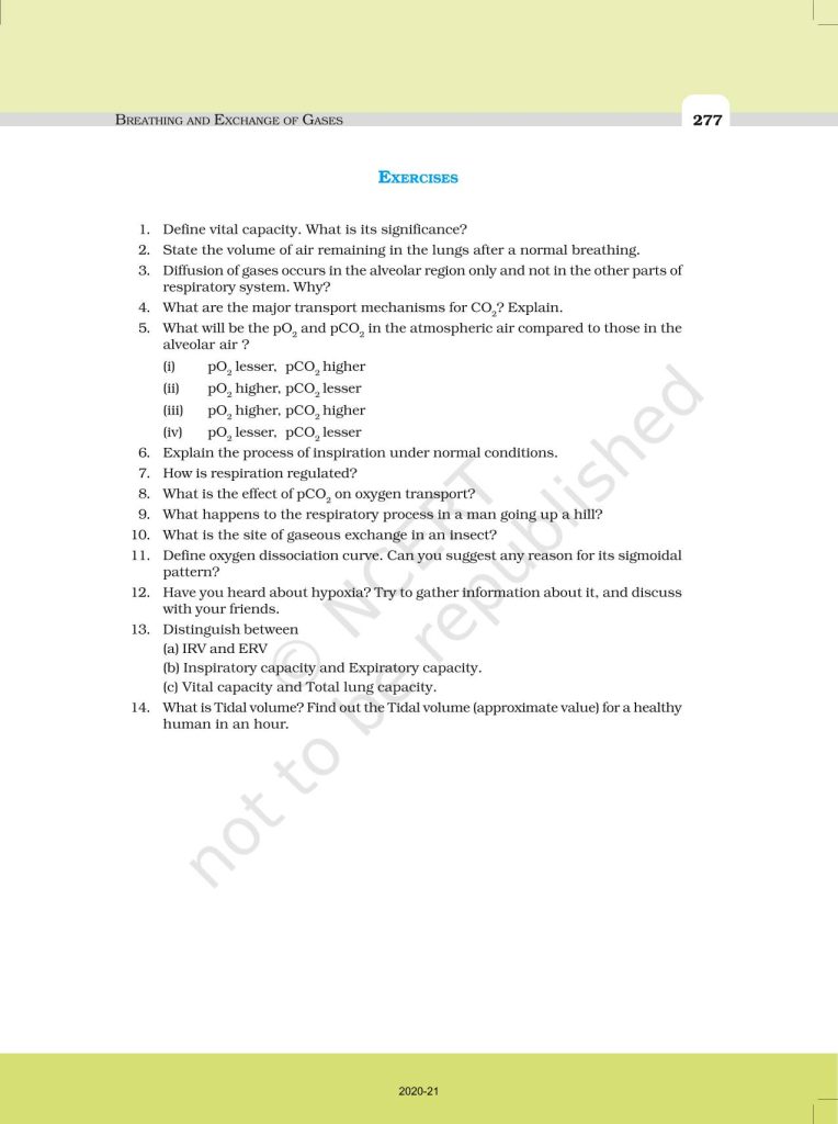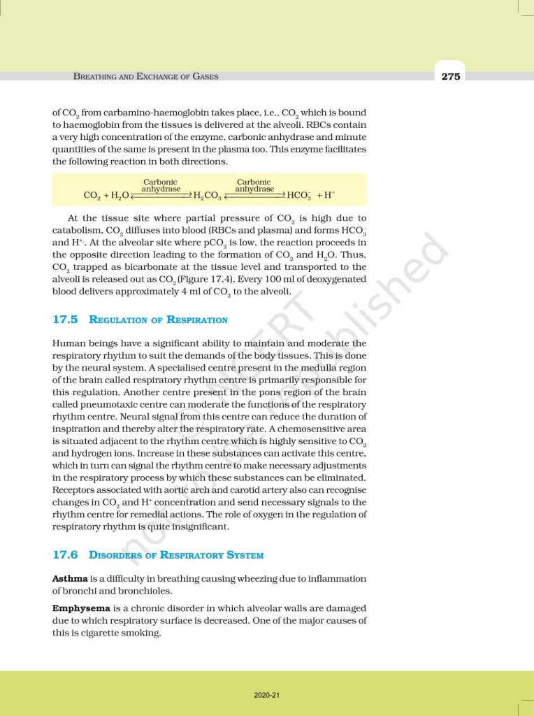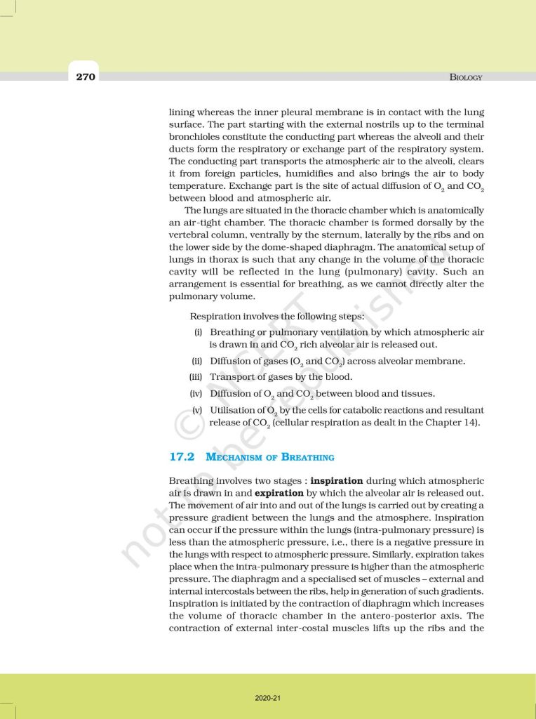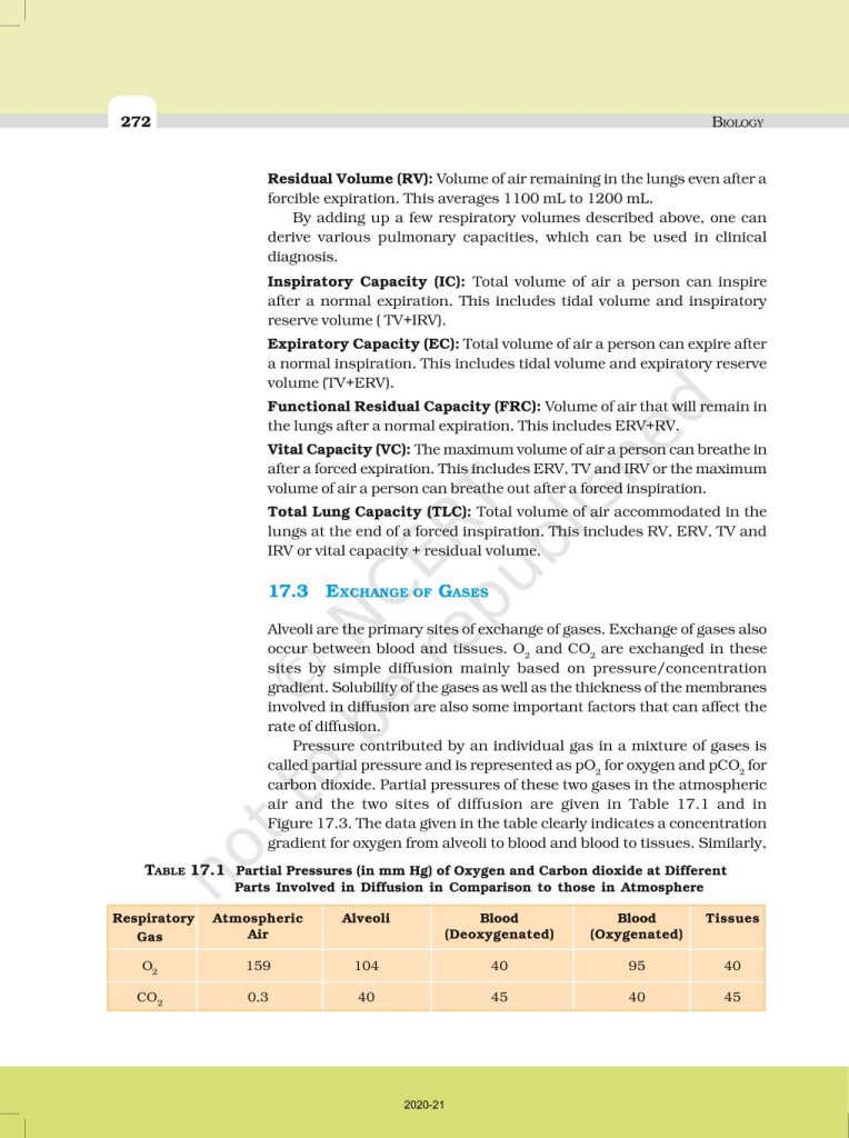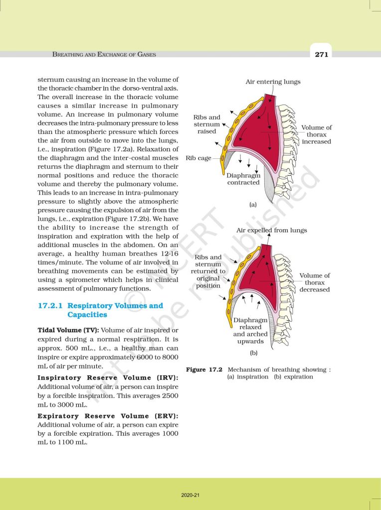 NCERT Book for Class 11 Biology – (Chapter 17 – Breathing And Exchange of Gases)