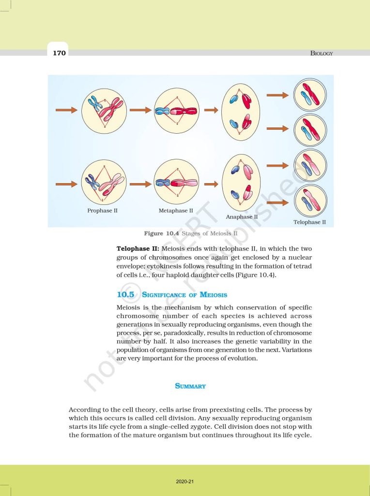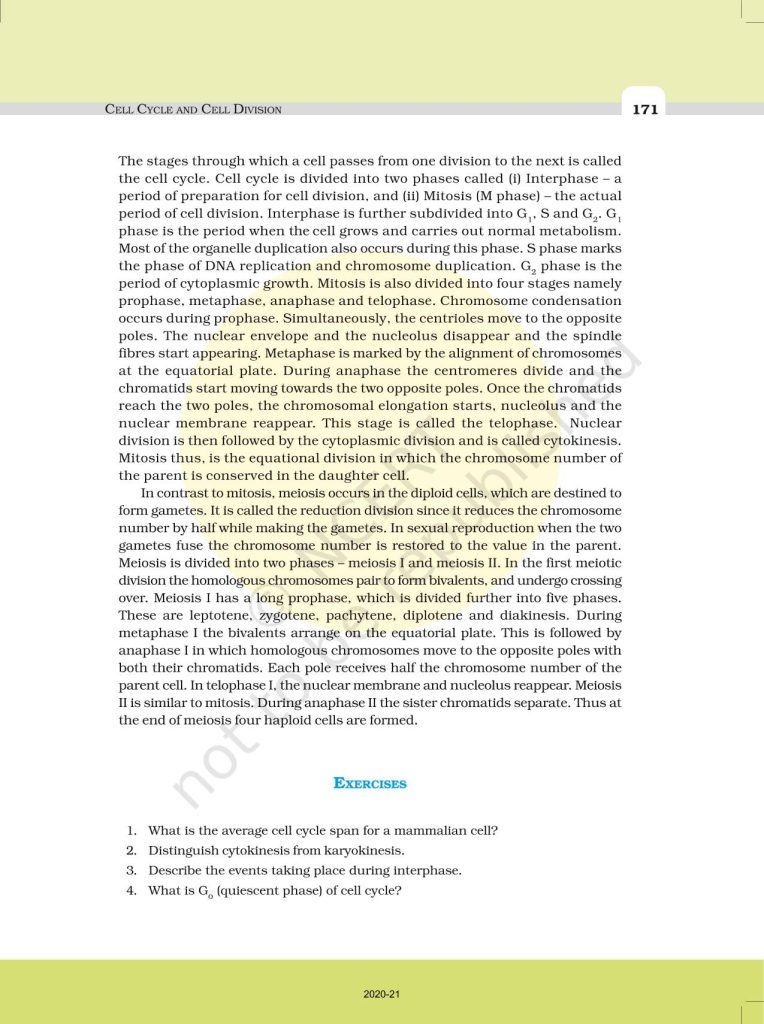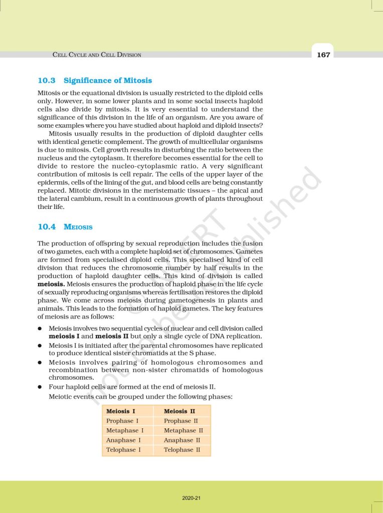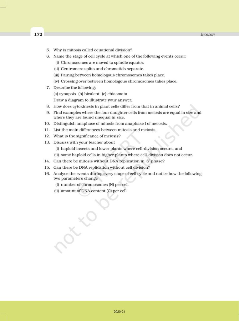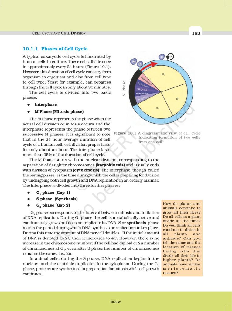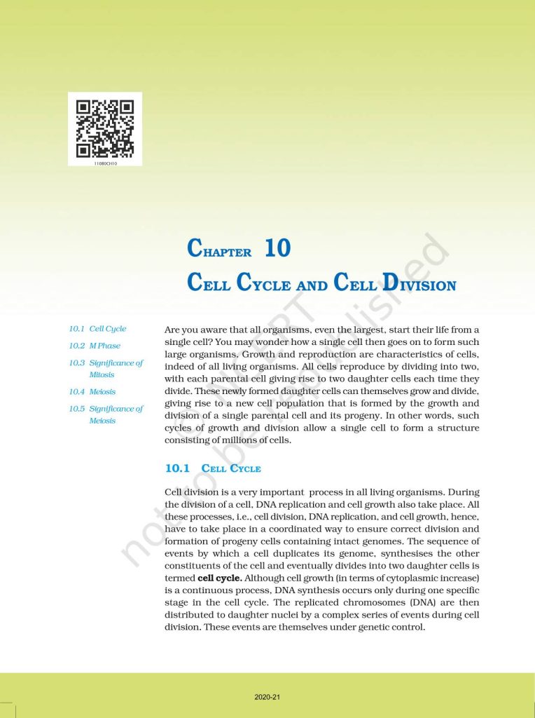 NCERT Book for Class 11 Biology – (Chapter 10 – Cell Cycle & Cell Division)