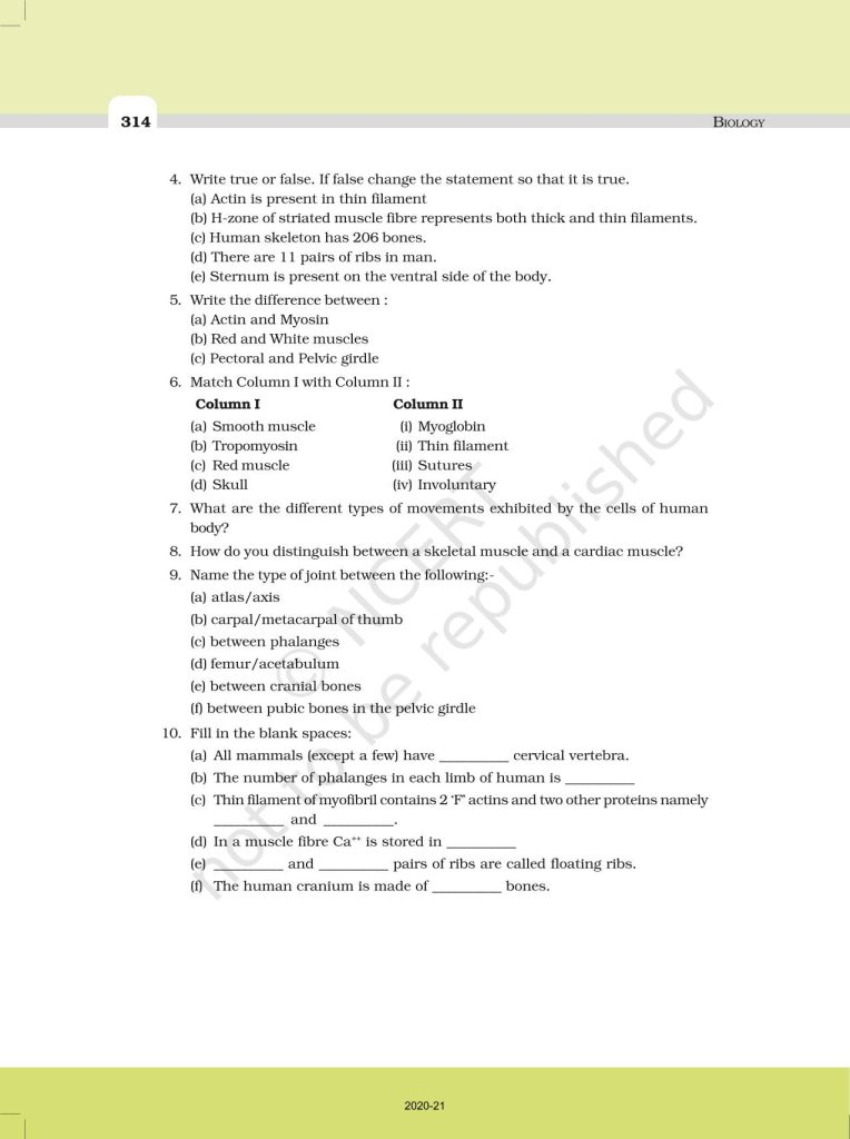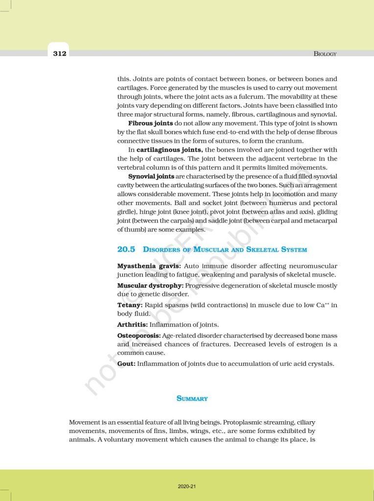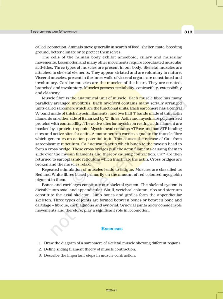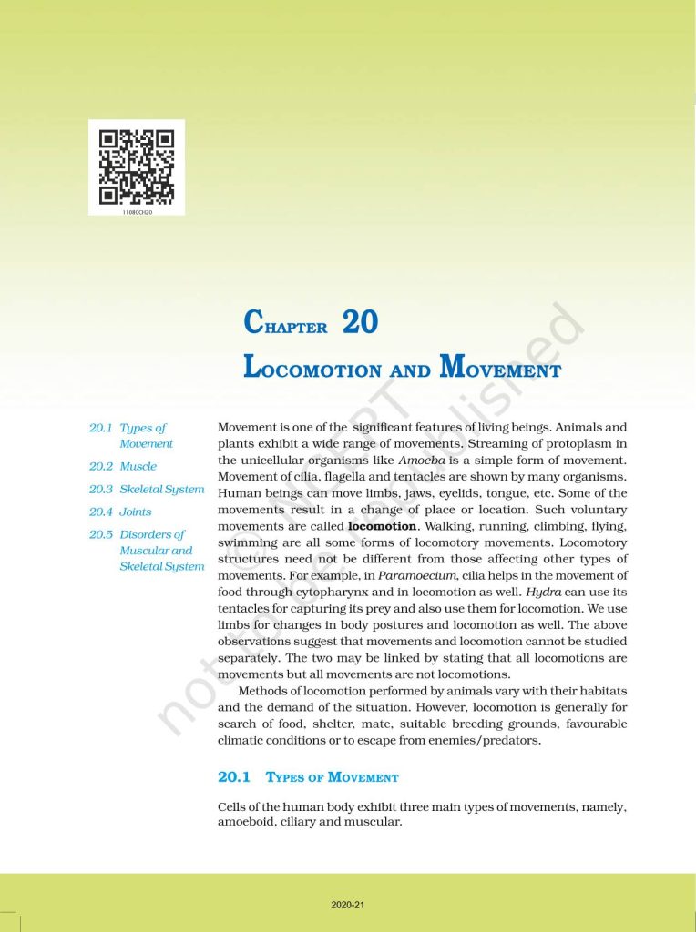 NCERT Book for Class 11 Biology – (Chapter 20 – Locomotion And Movement)