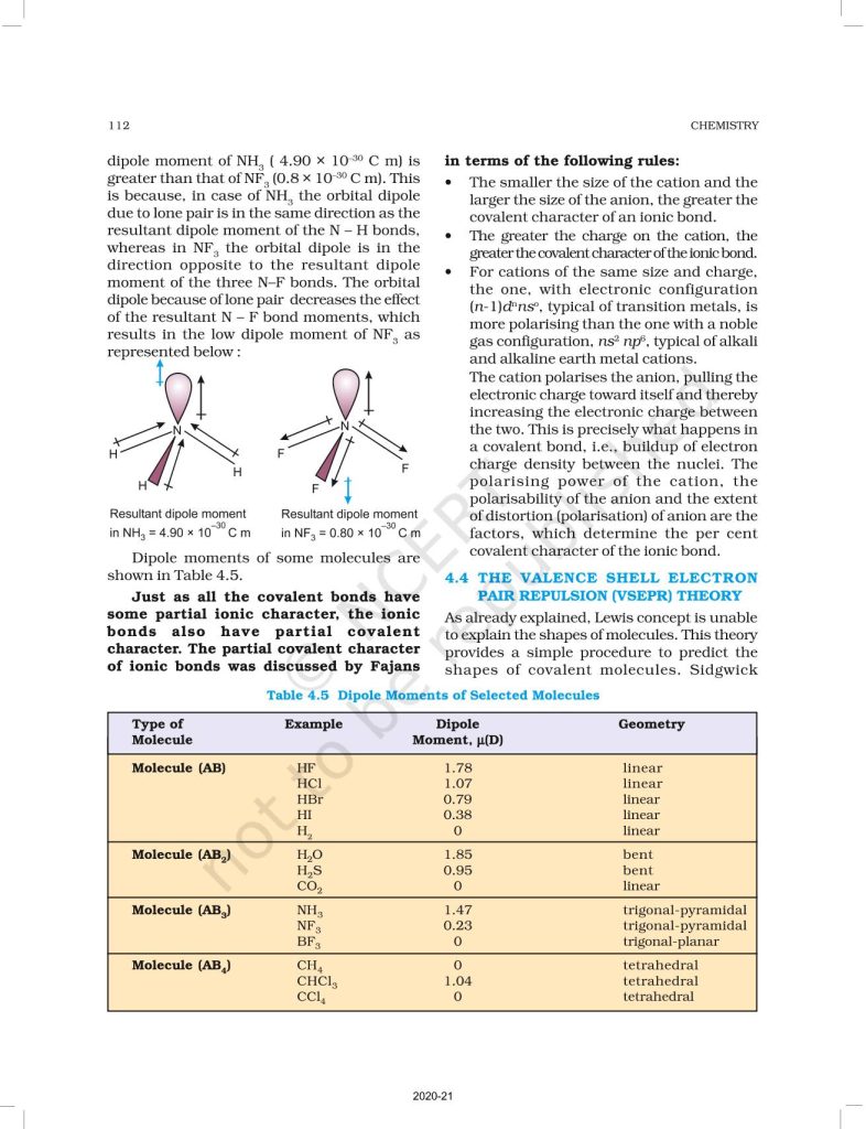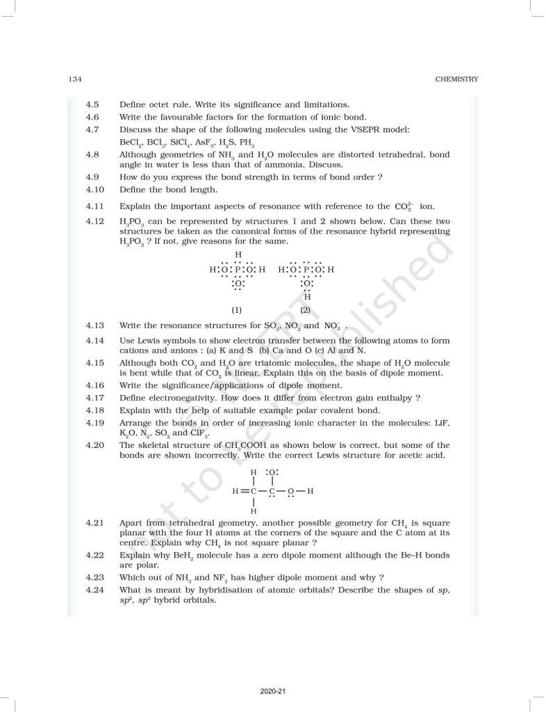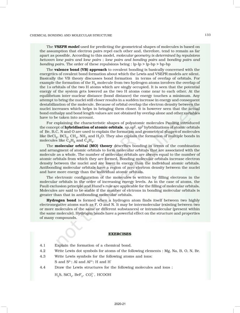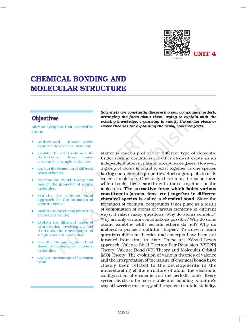 NCERT Book for Class 11 Chemistry Part 1 – (Chapter 4 – Chemical Bonding and Molecular Structure)