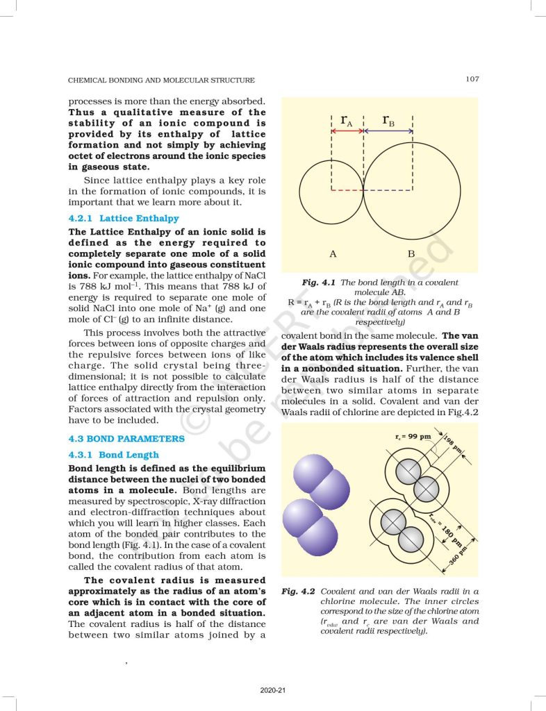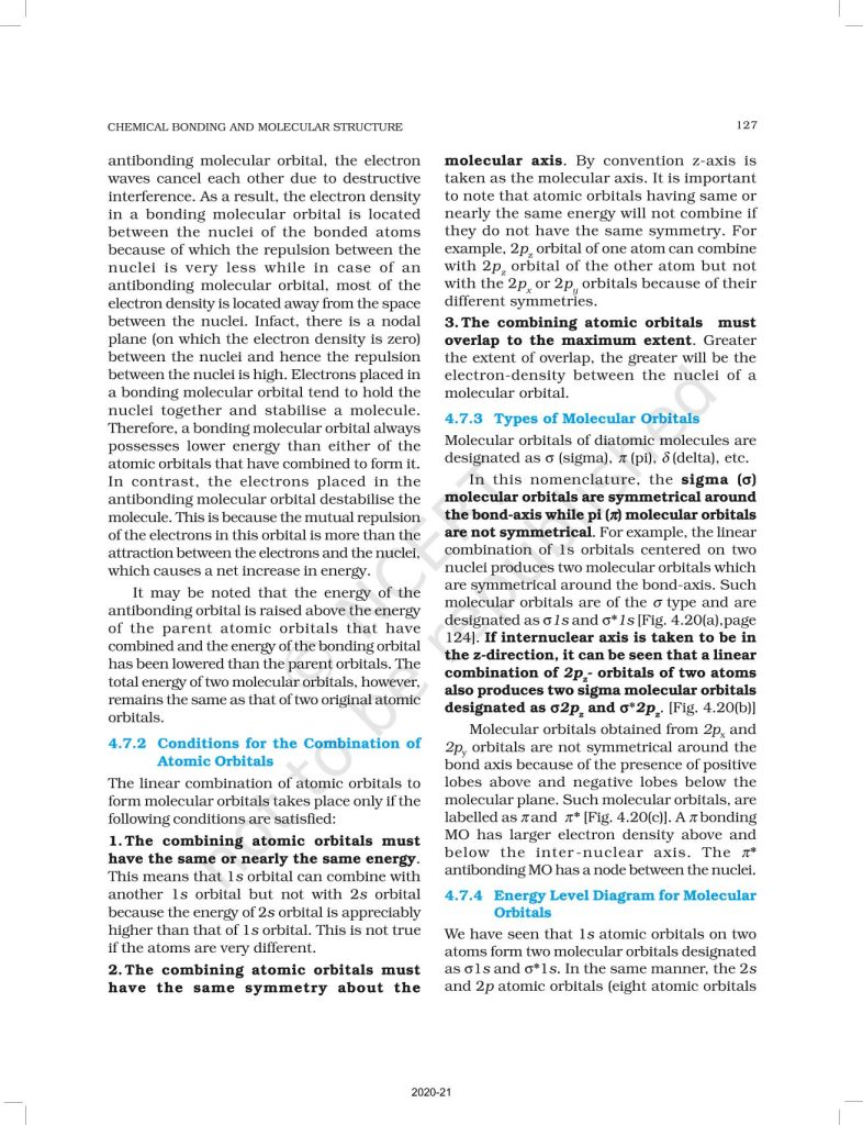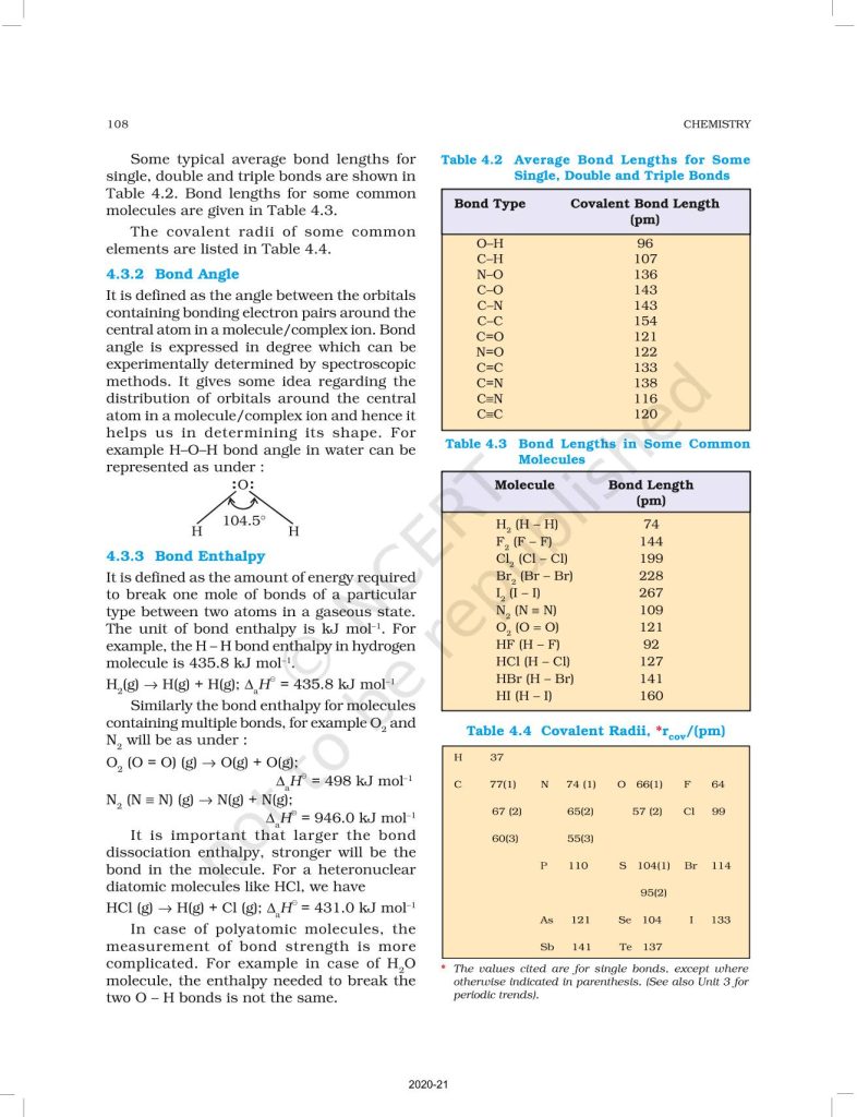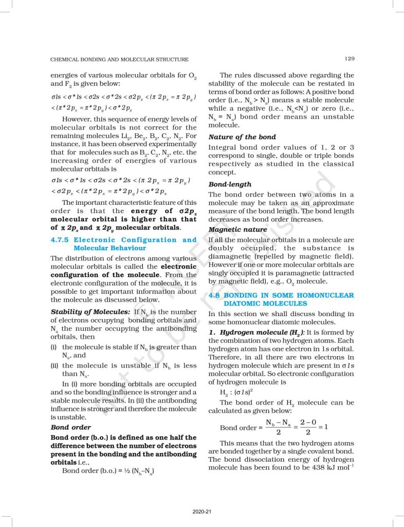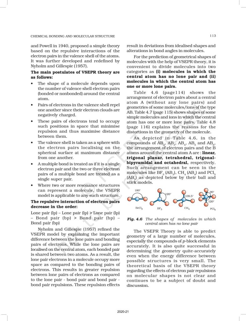 NCERT Book for Class 11 Chemistry Part 1 – (Chapter 4 – Chemical Bonding and Molecular Structure)