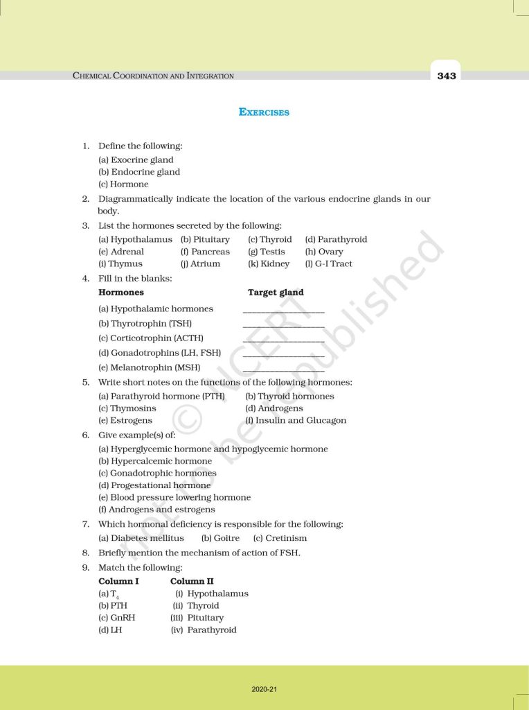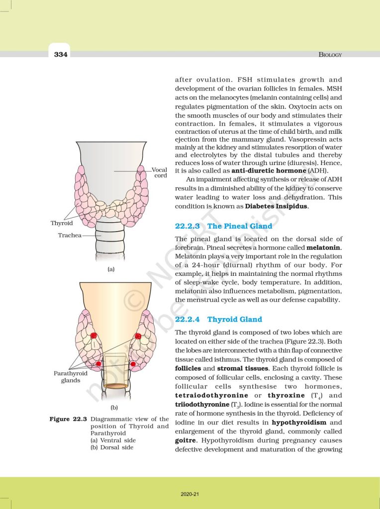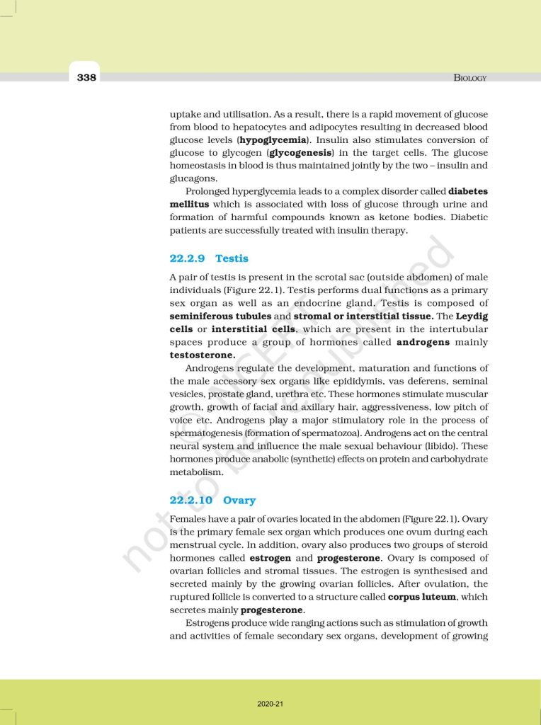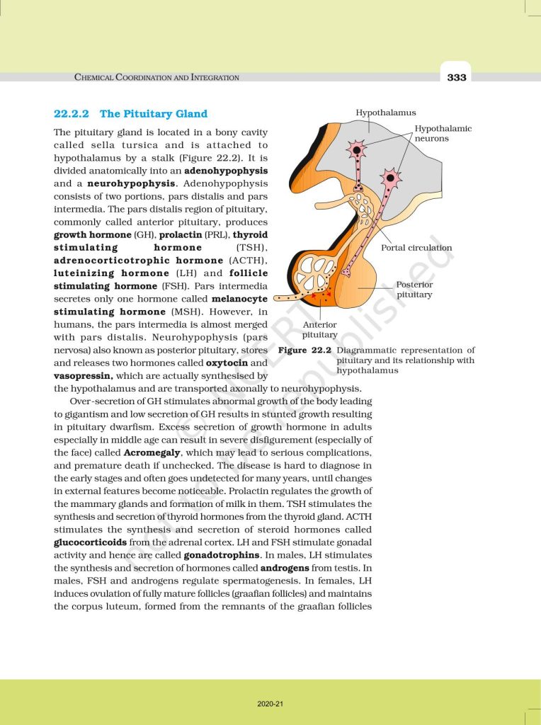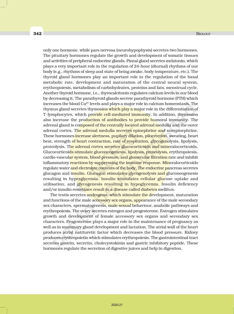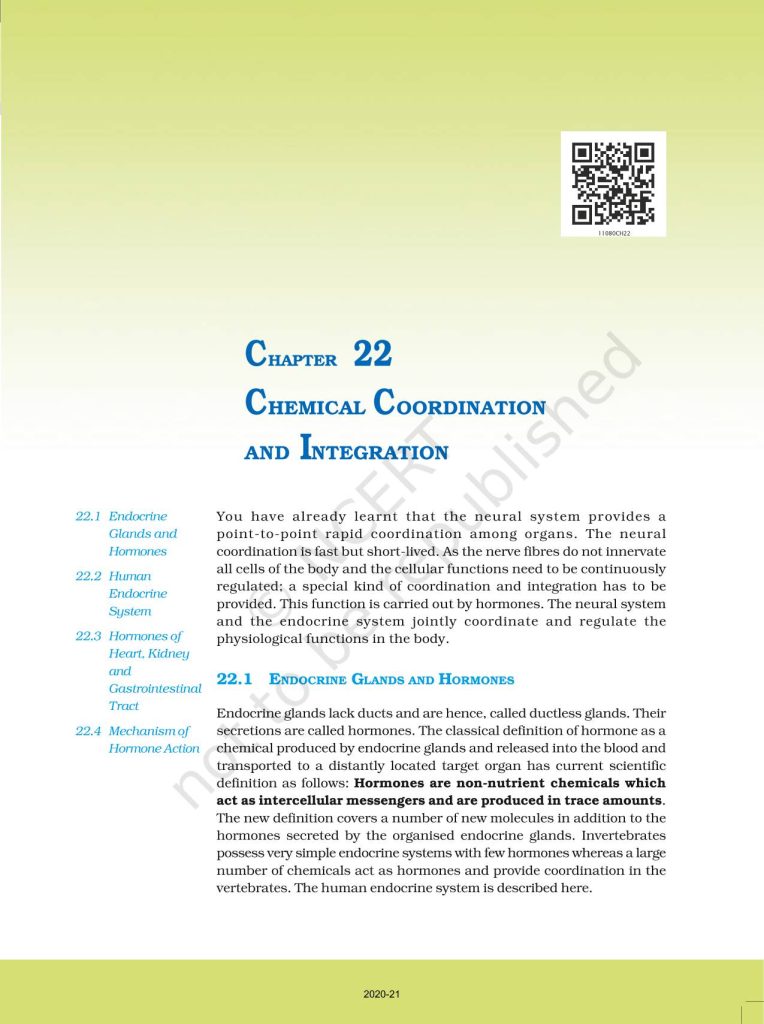NCERT Book for Class 11 Biology – (Chapter 22 – Chemical Coordination And Integration)