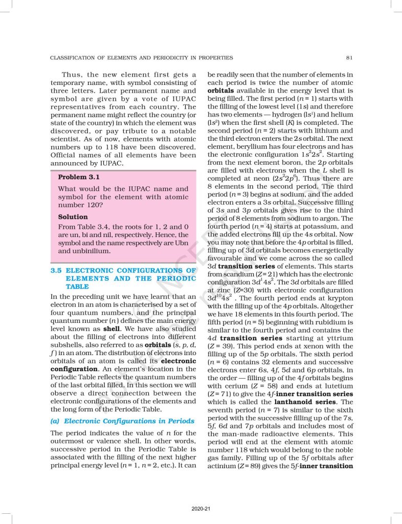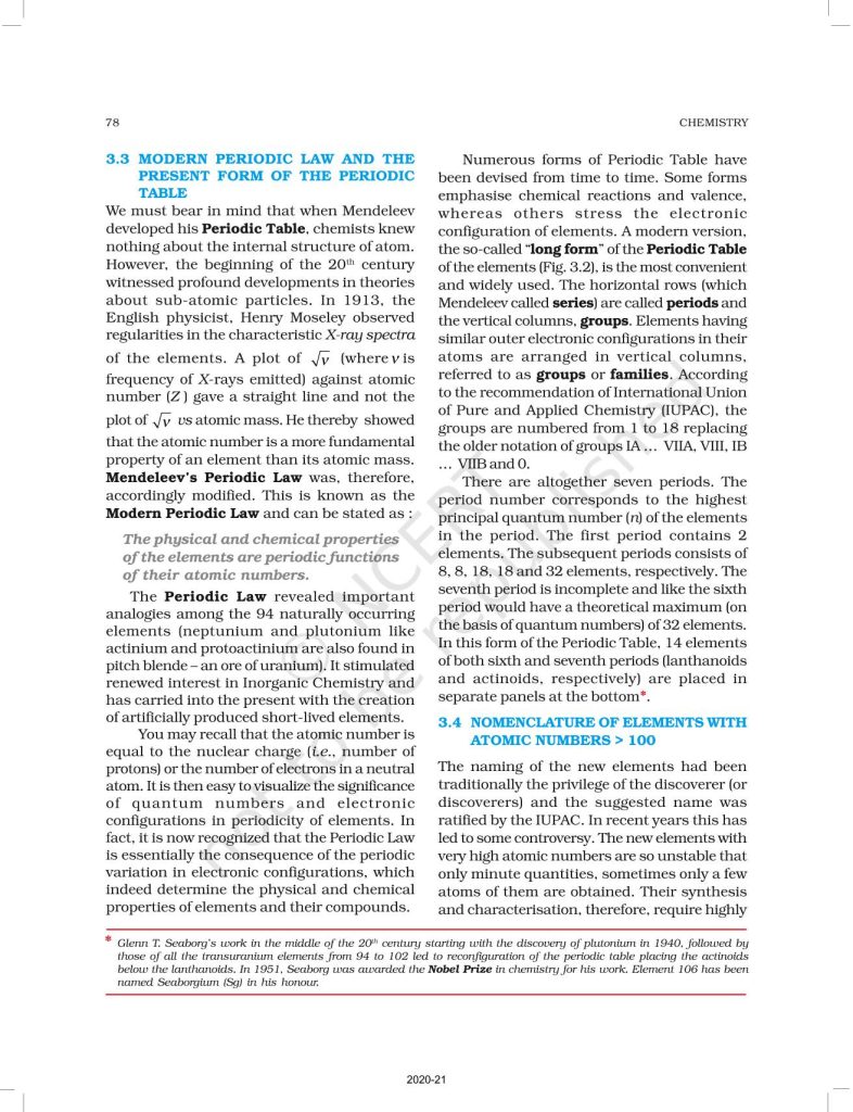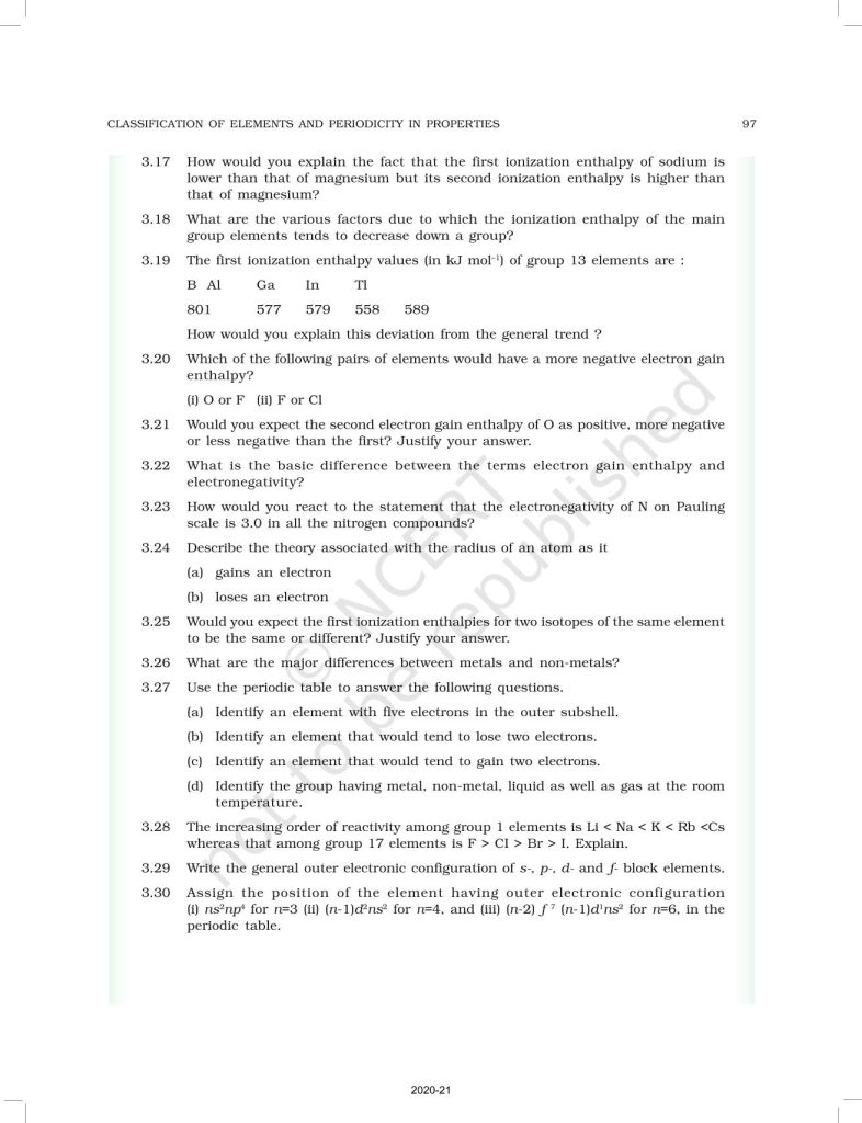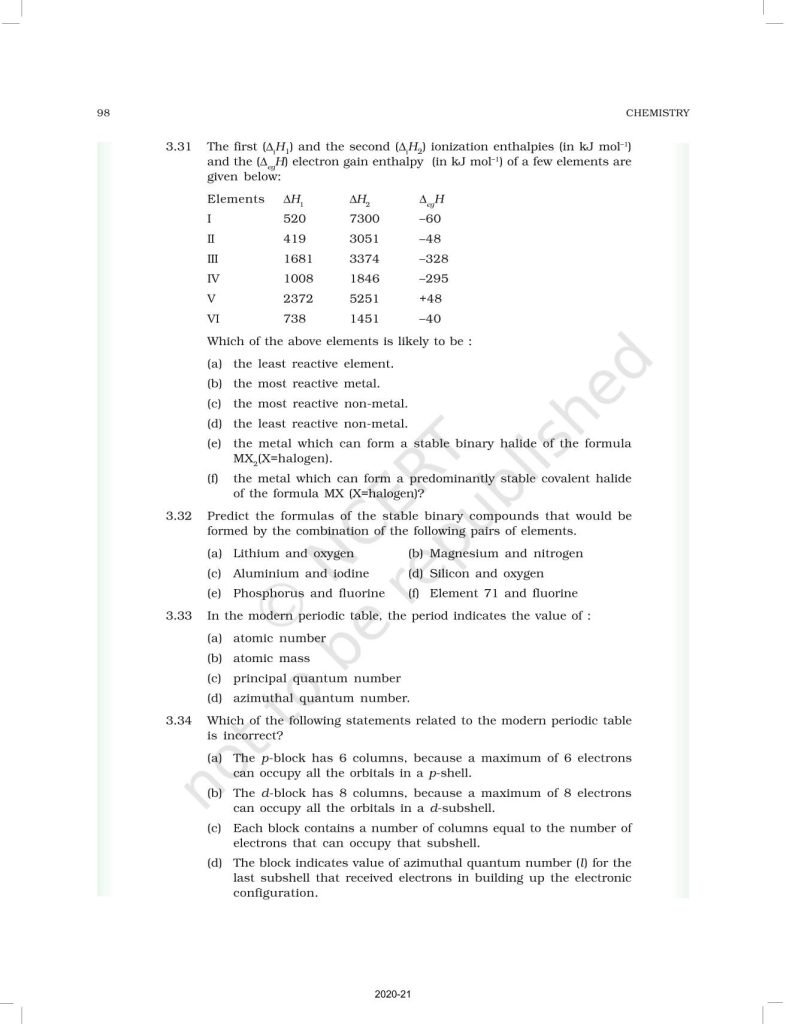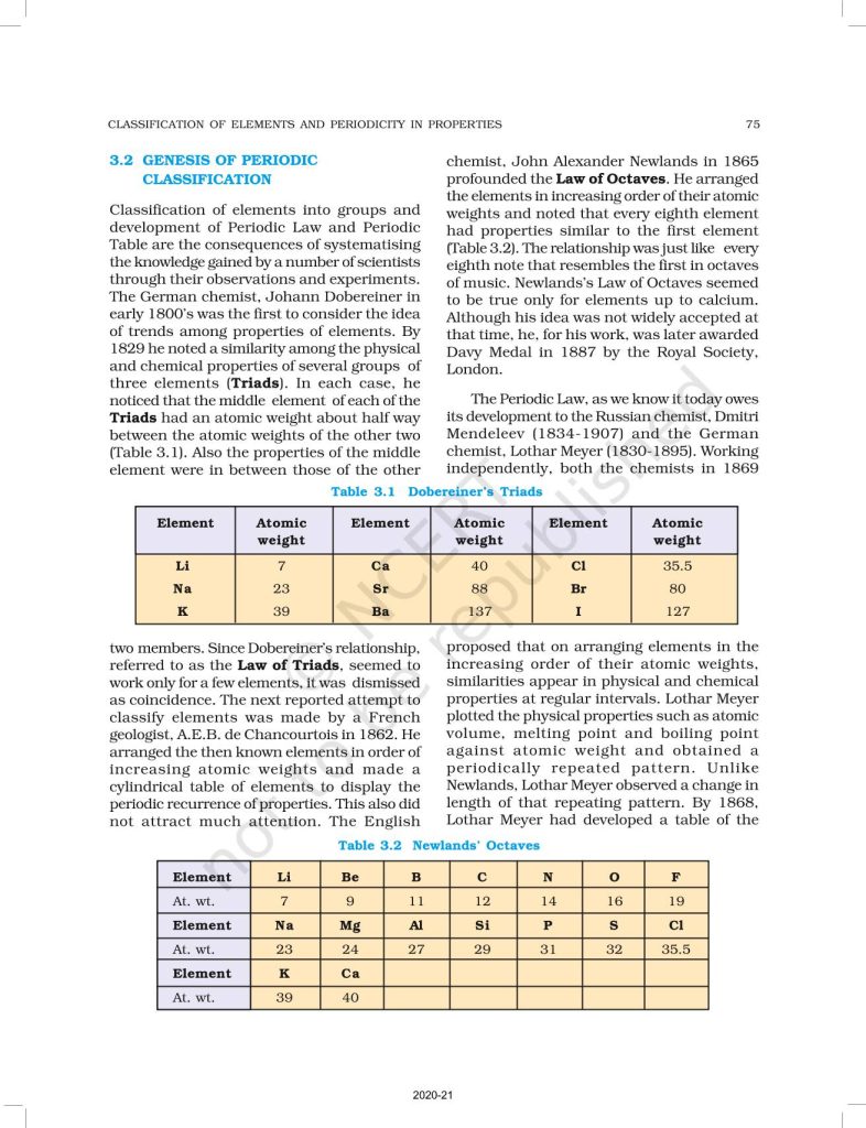 NCERT Book for Class 11 Chemistry Part 1 – (Chapter 3 – Classification Of Elements And Periodicity In Properties)