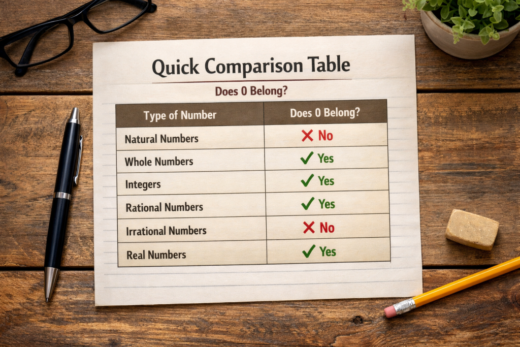 | Type of Number | Does 0 Belong? |
