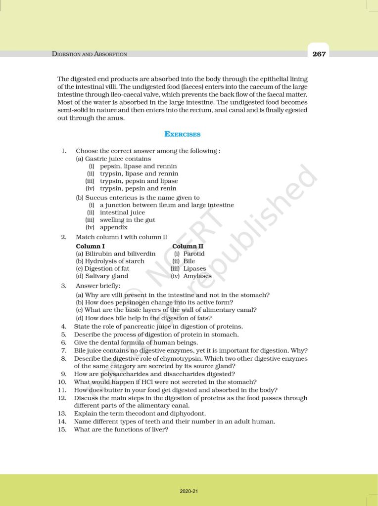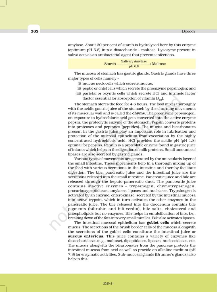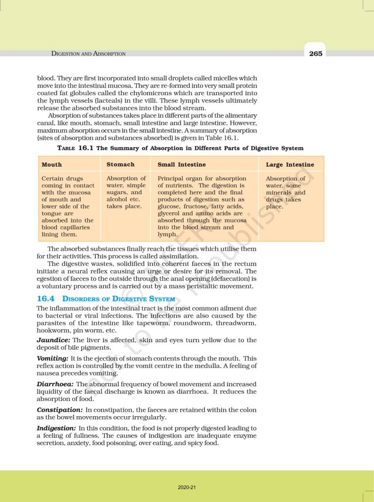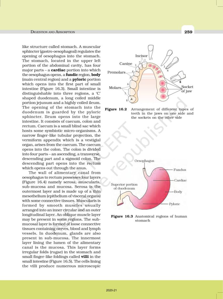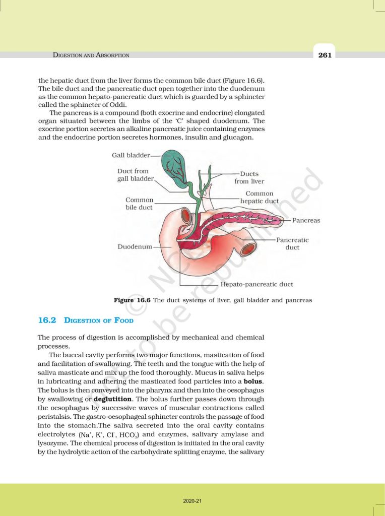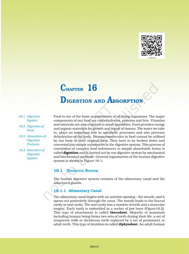 NCERT Book for Class 11 Biology – (Chapter 16 – Digestion and Absorption)