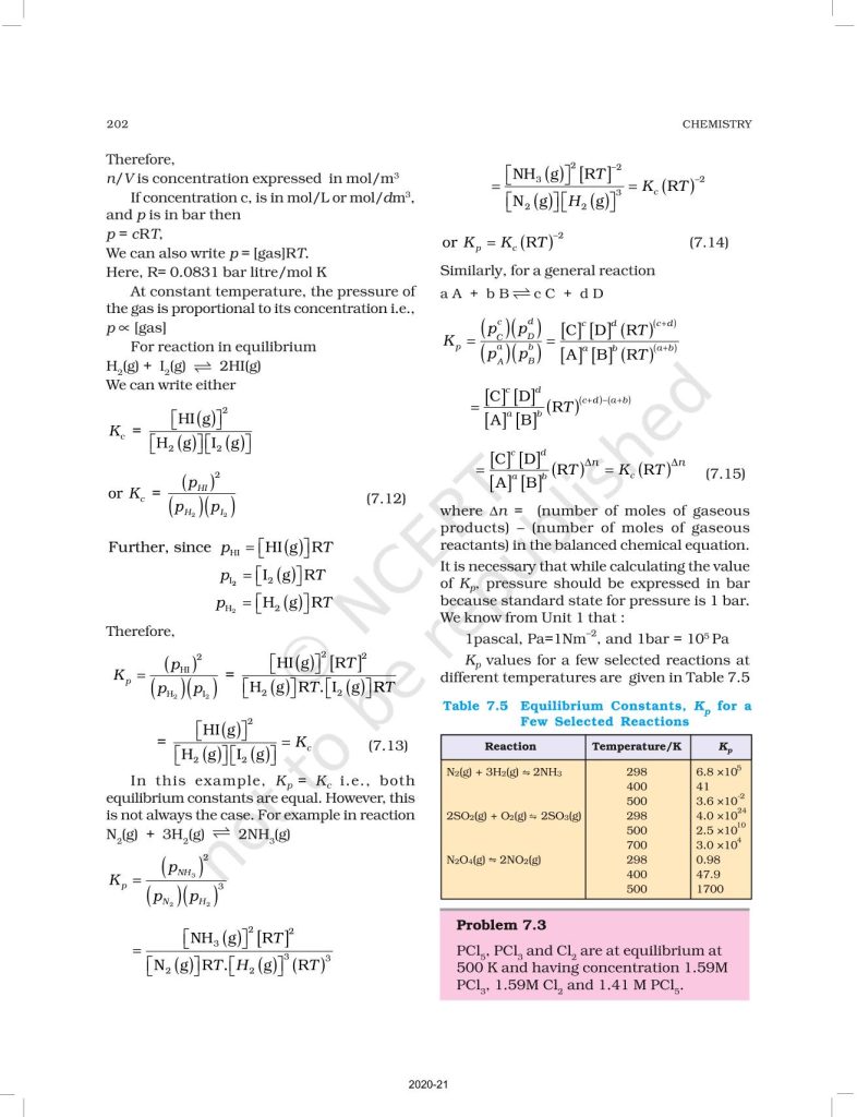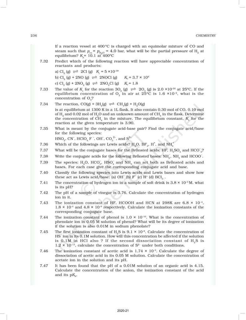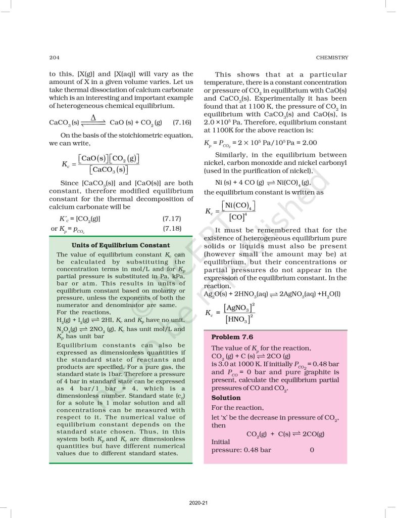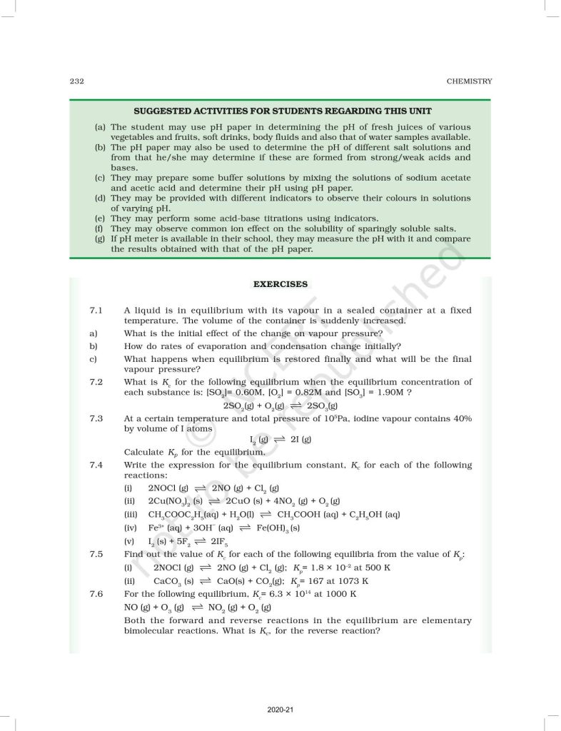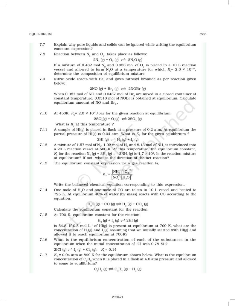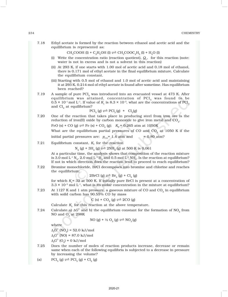 NCERT Book for Class 11 Chemistry Part 1 – (Chapter 7 – Equilibrium)