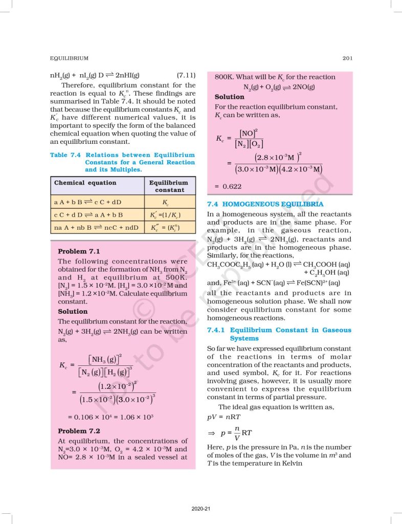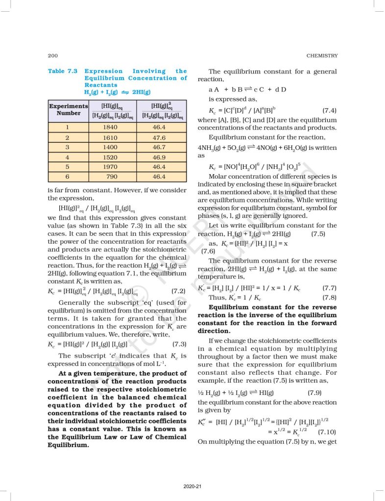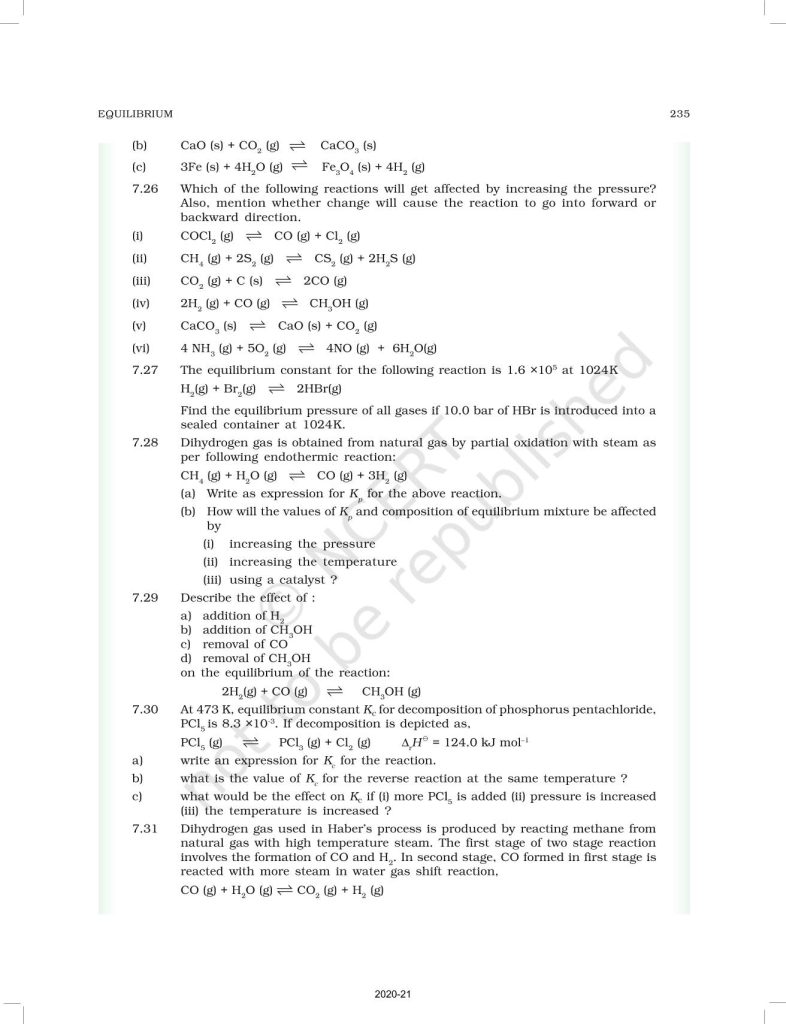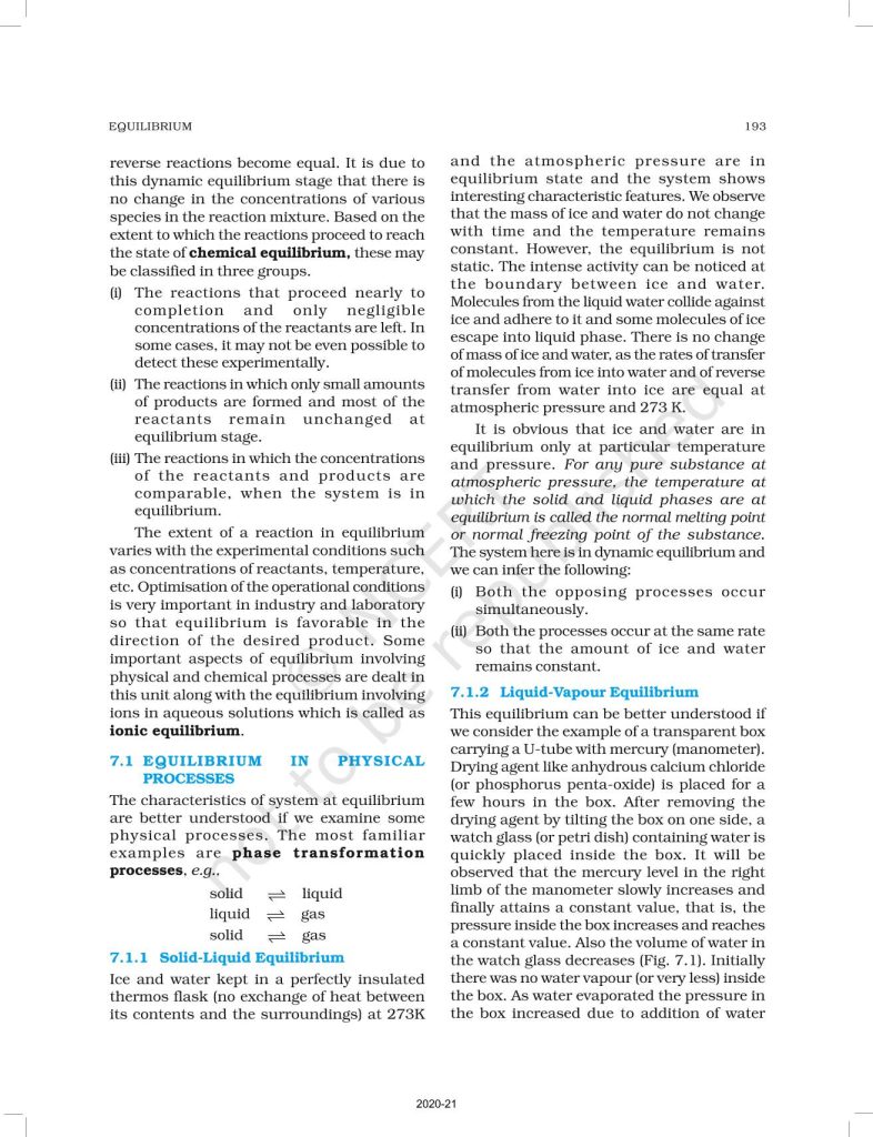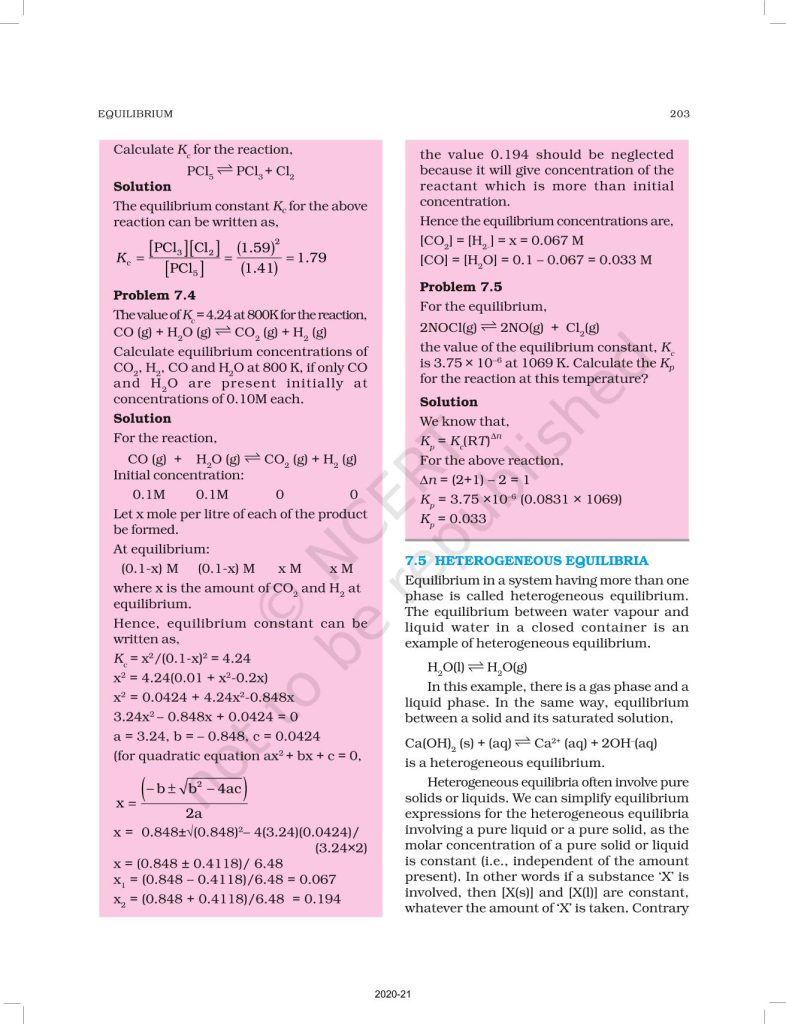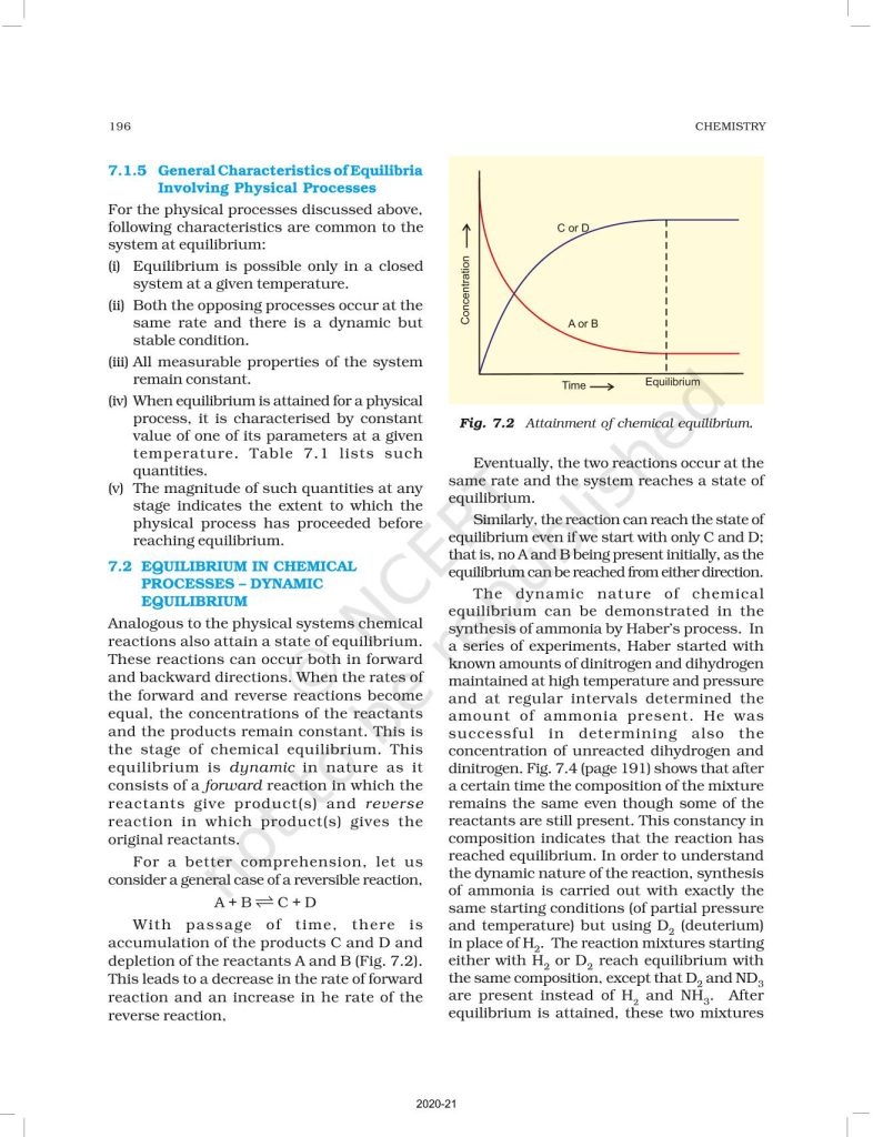 NCERT Book for Class 11 Chemistry Part 1 – (Chapter 7 – Equilibrium)