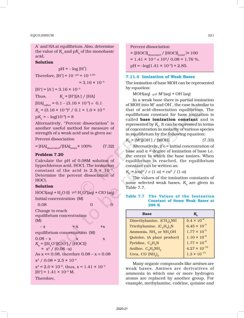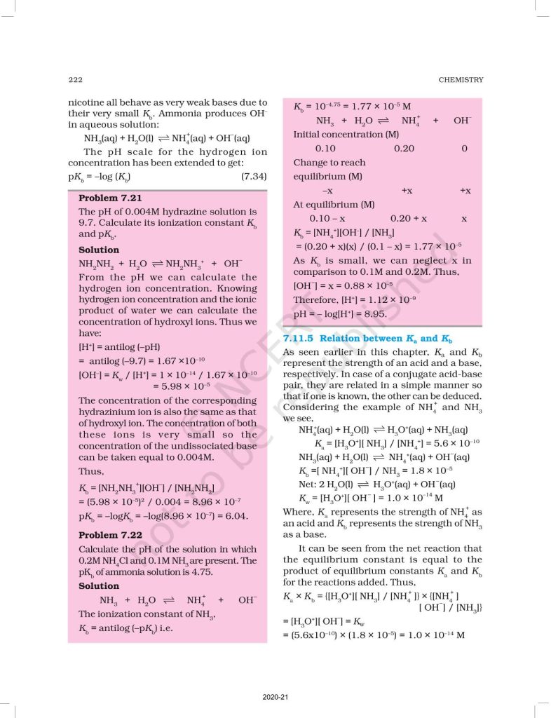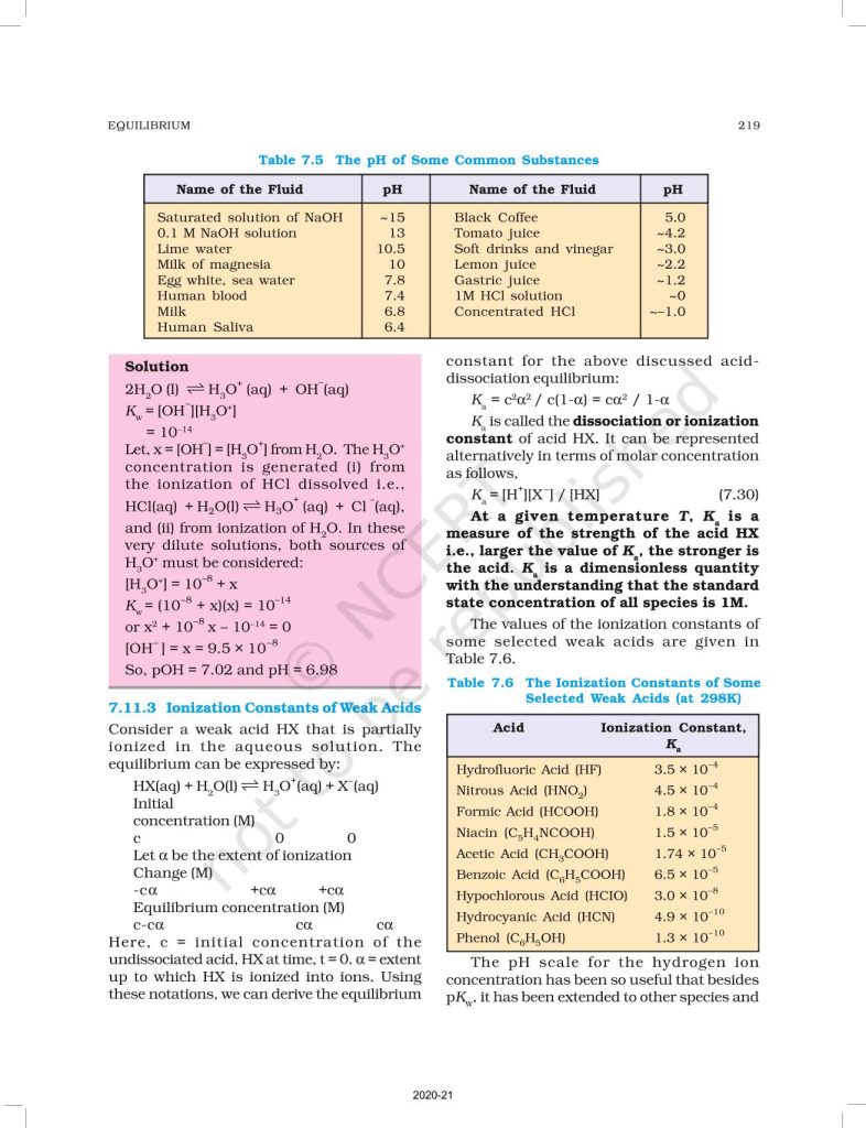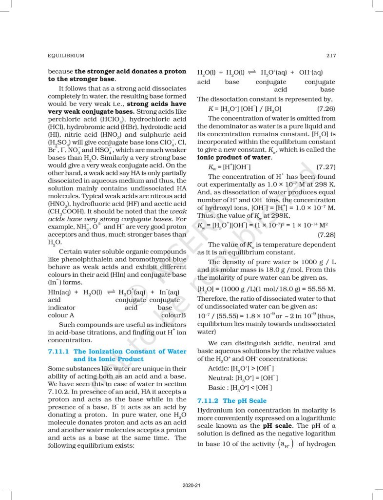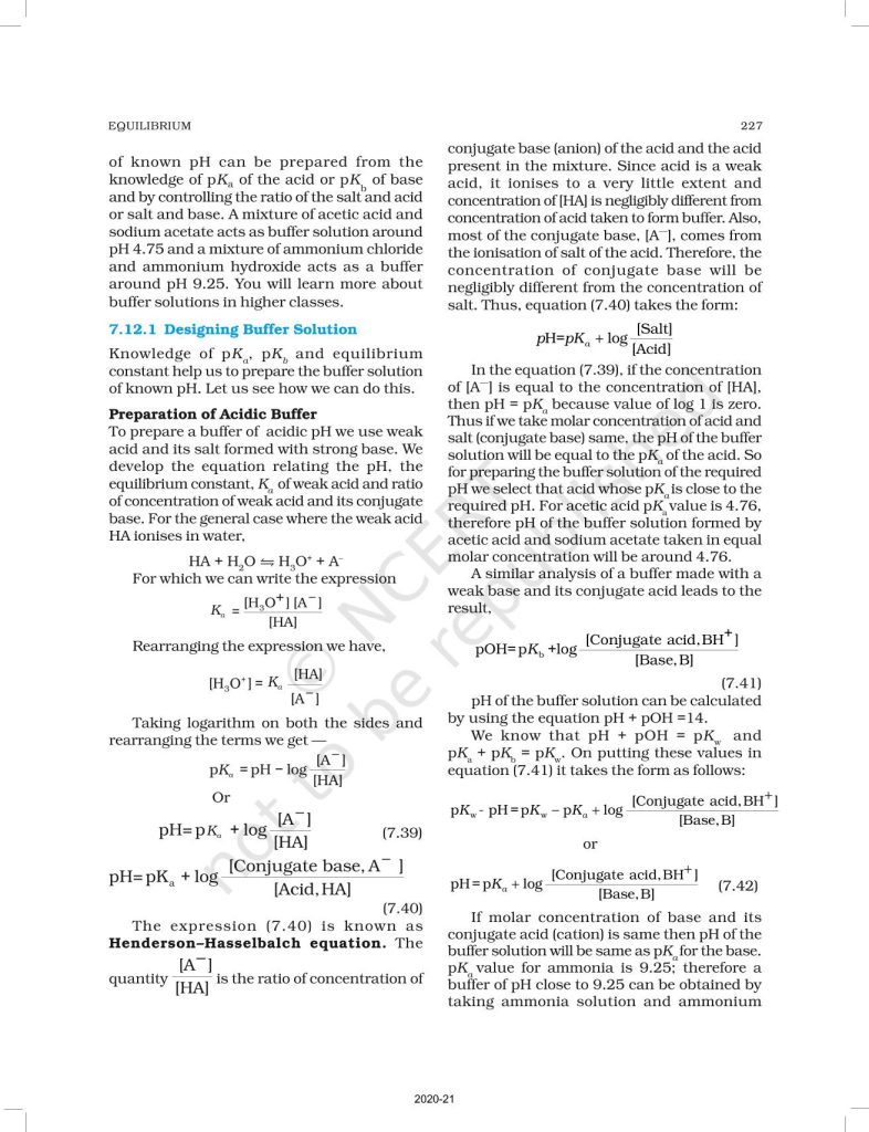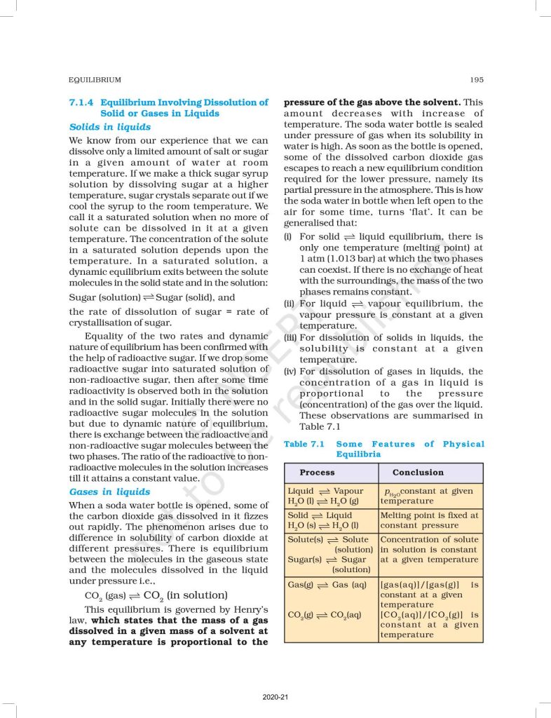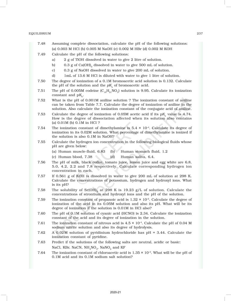 NCERT Book for Class 11 Chemistry Part 1 – (Chapter 7 – Equilibrium)