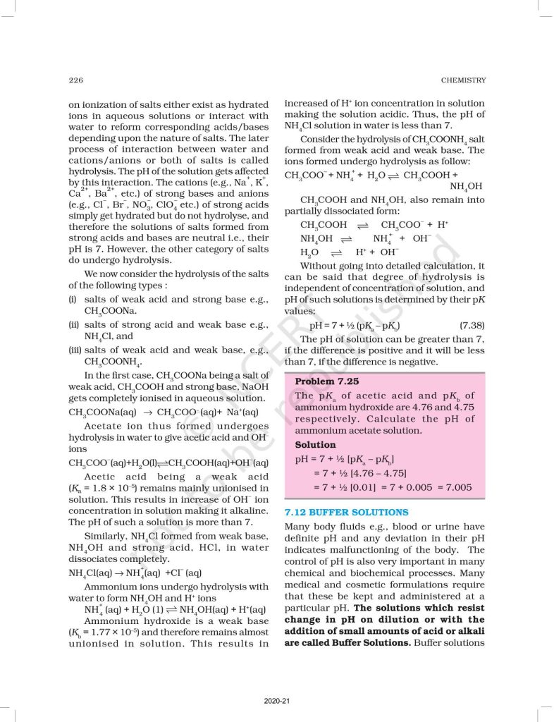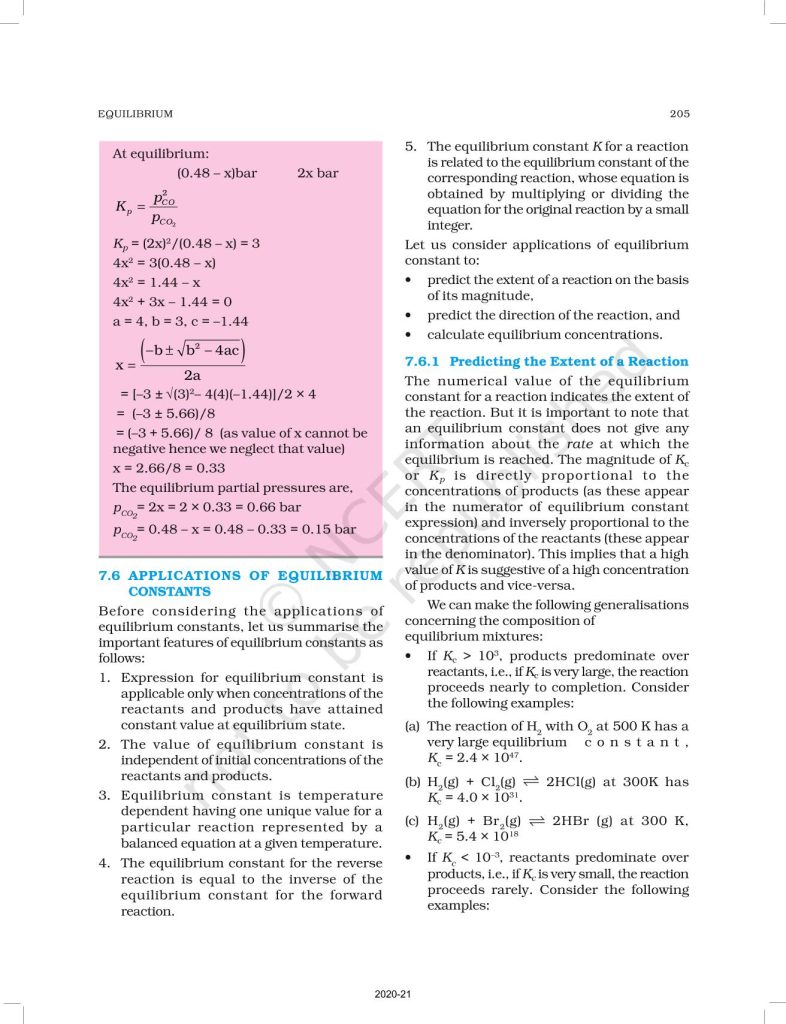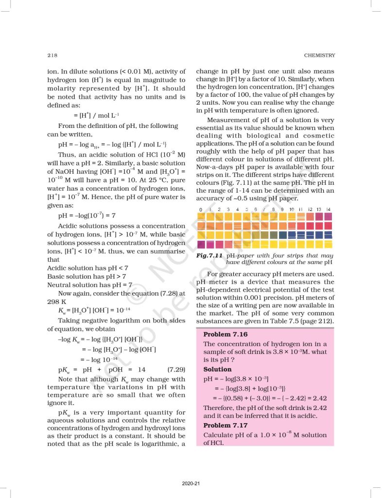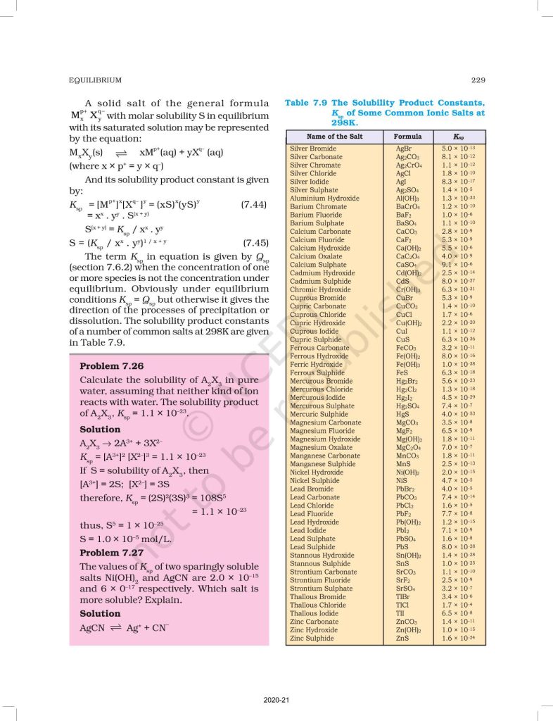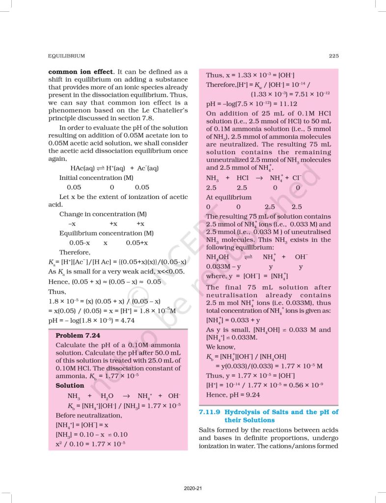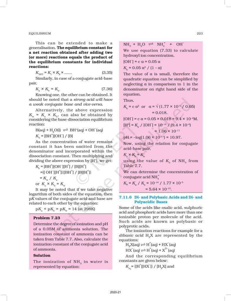 NCERT Book for Class 11 Chemistry Part 1 – (Chapter 7 – Equilibrium)