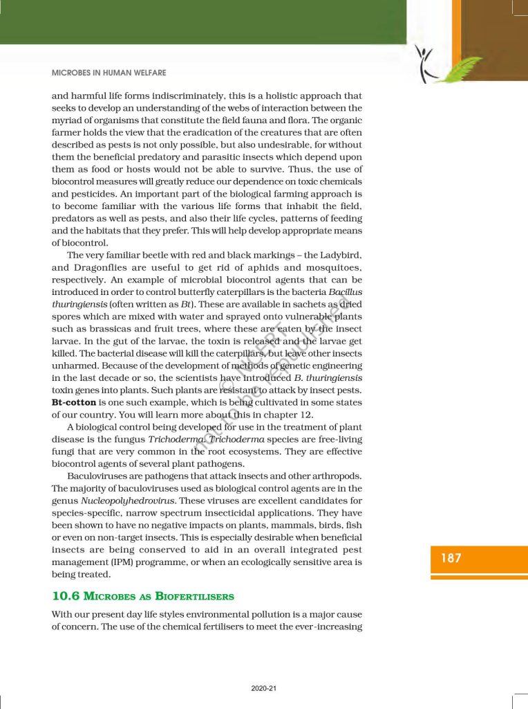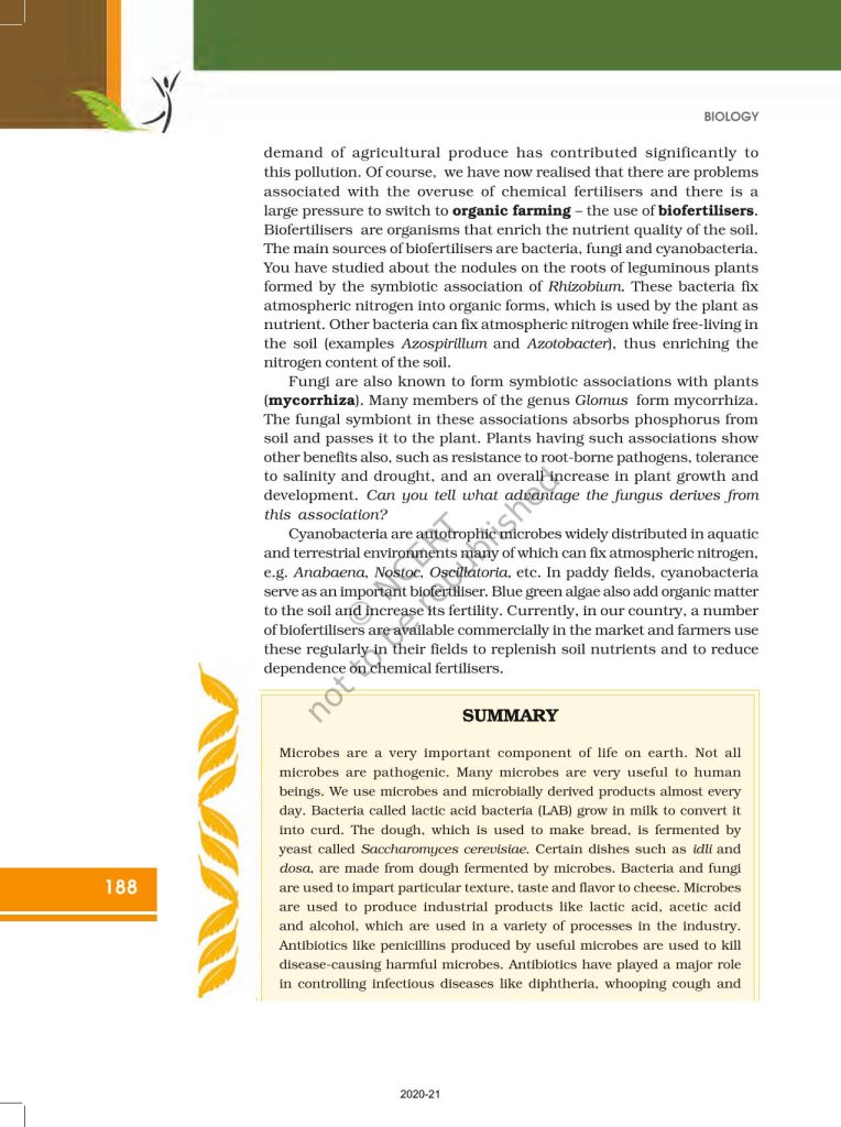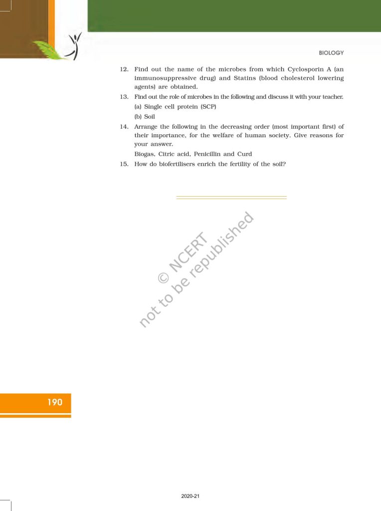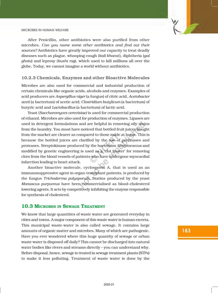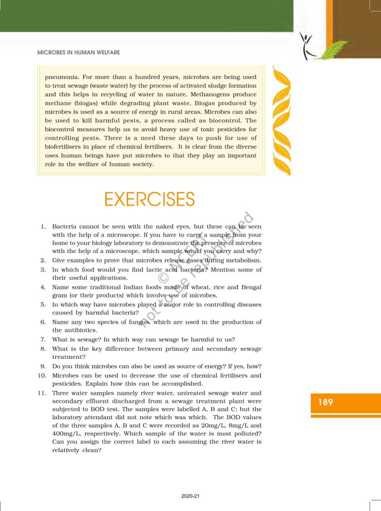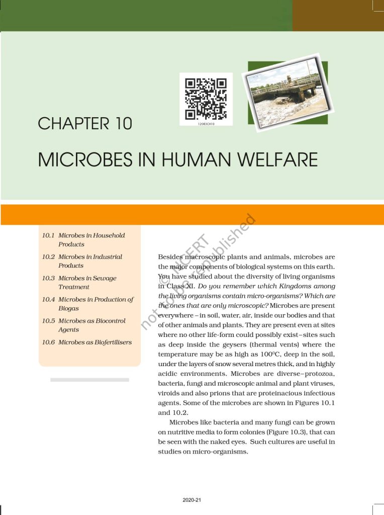 NCERT Book for Class 12 Biology – (Chapter 10 – Microbes in Human Welfare)