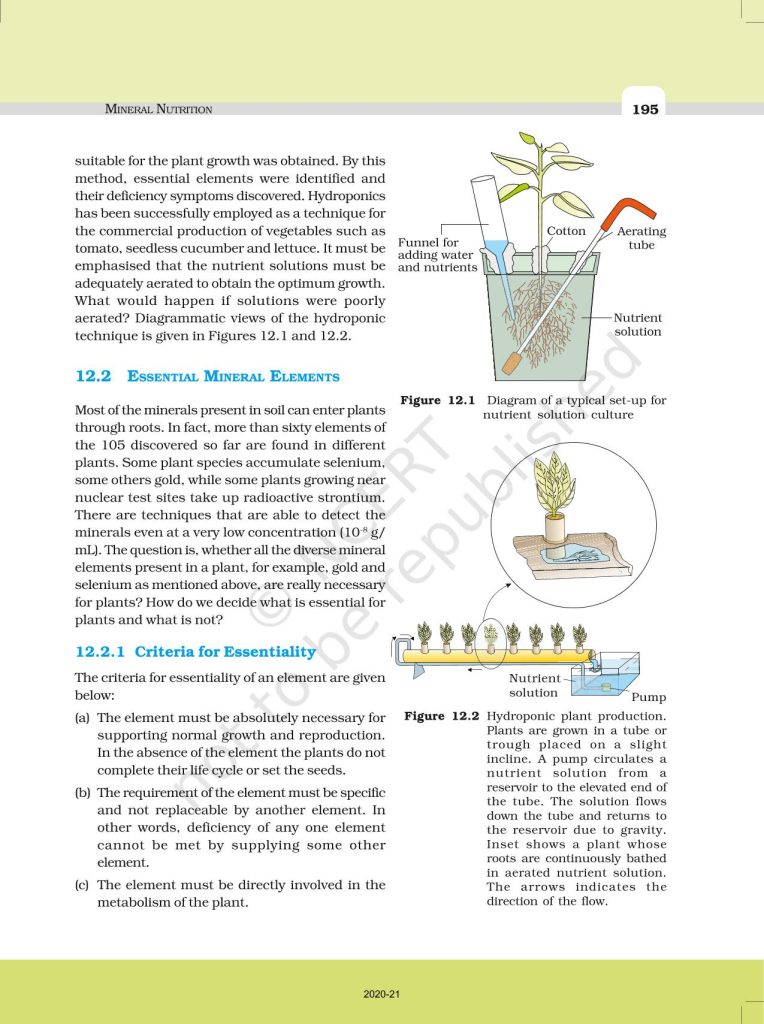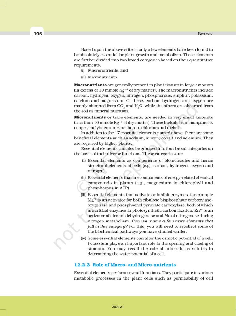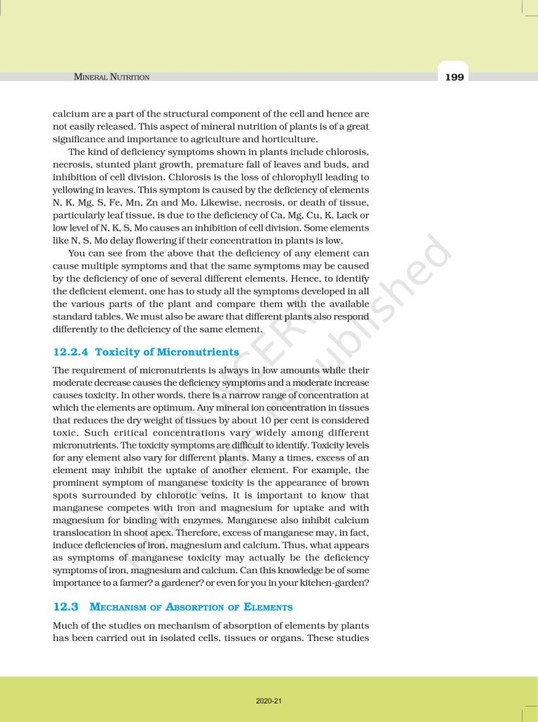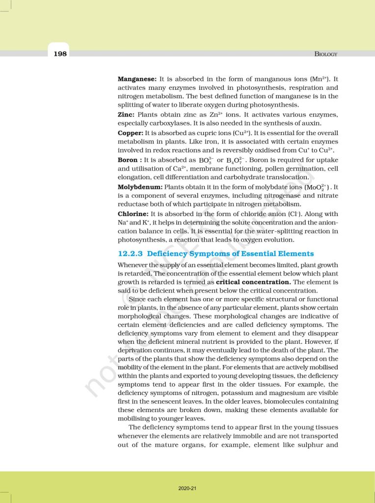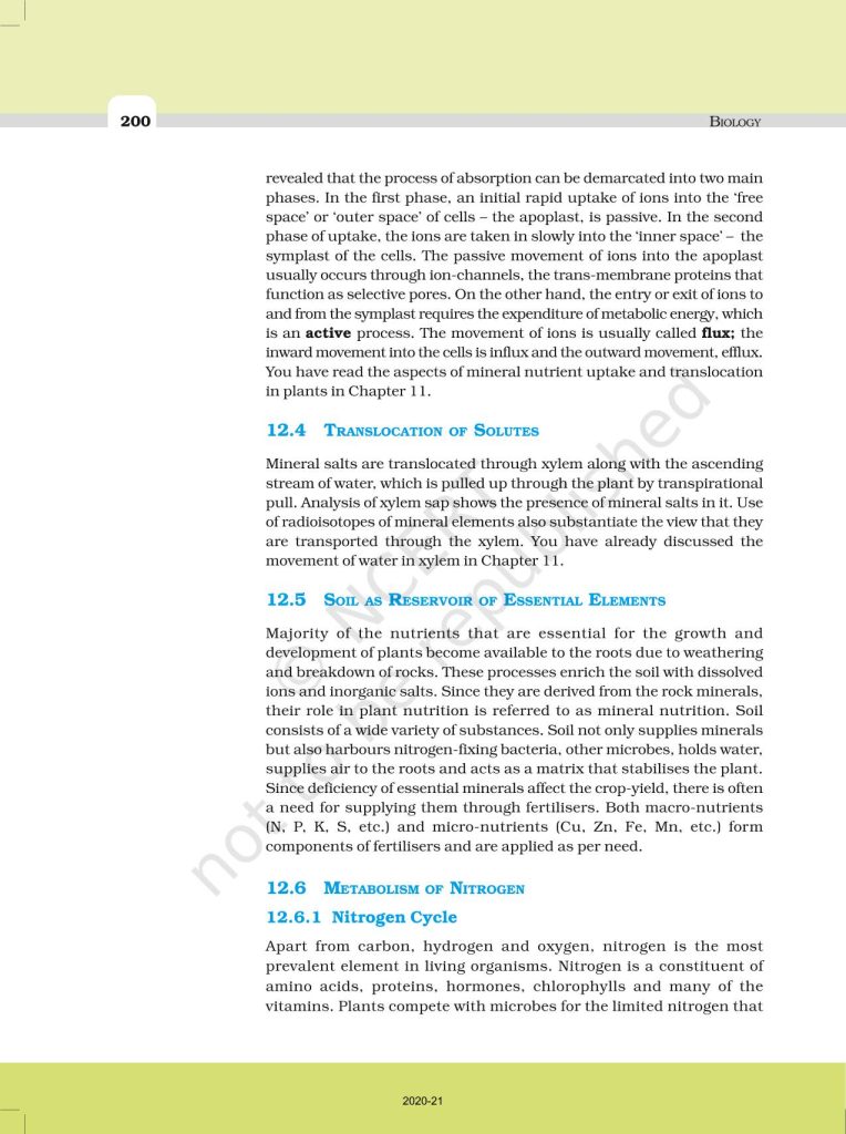 NCERT Book for Class 11 Biology – (Chapter 12 – Mineral Nutrition)