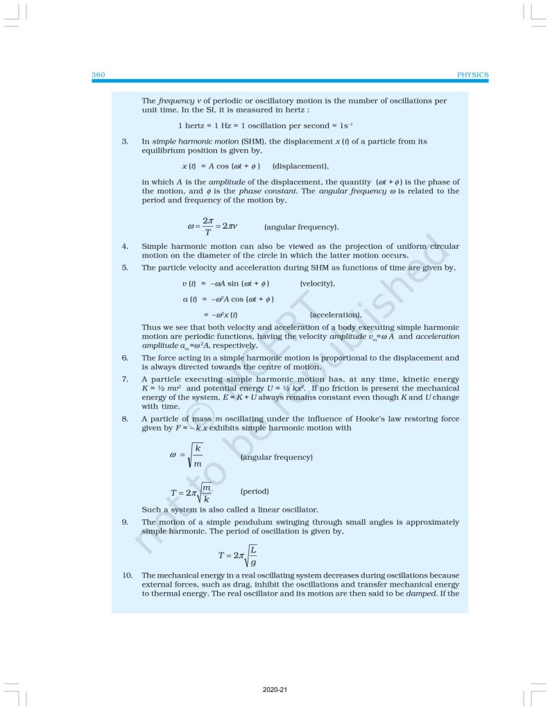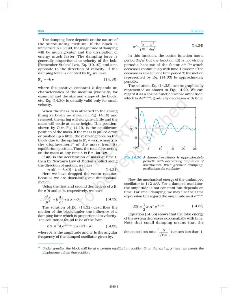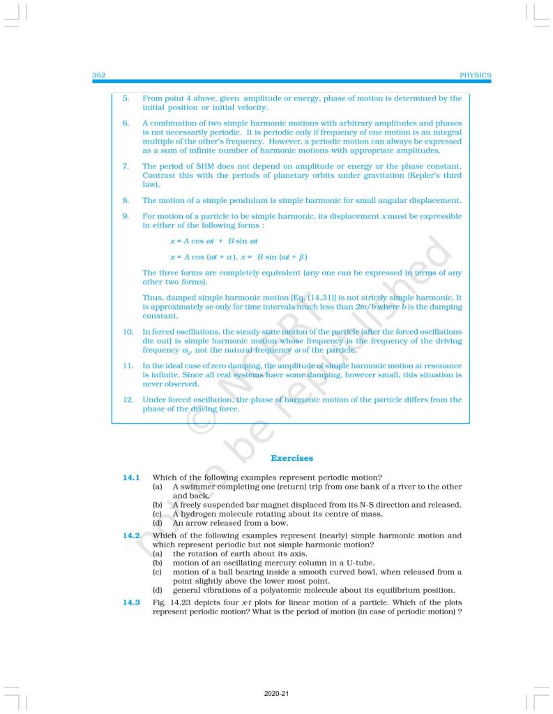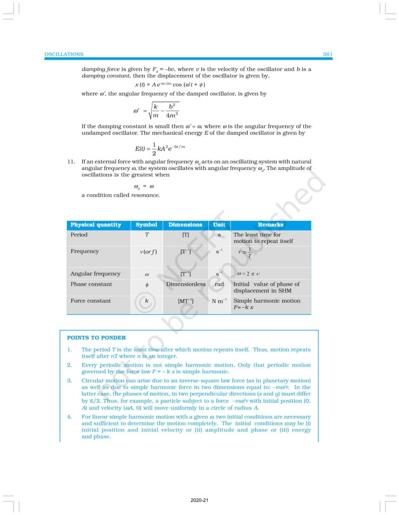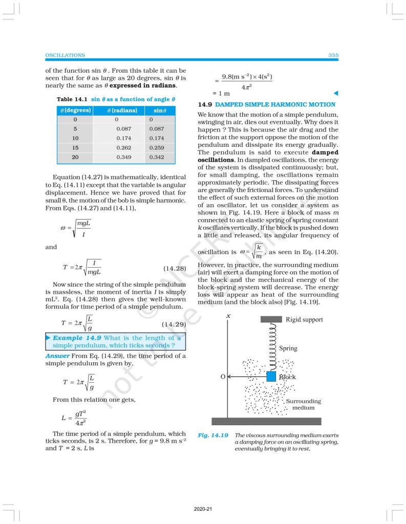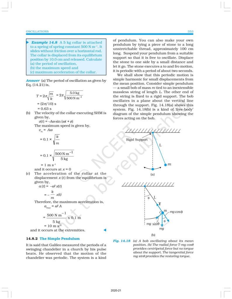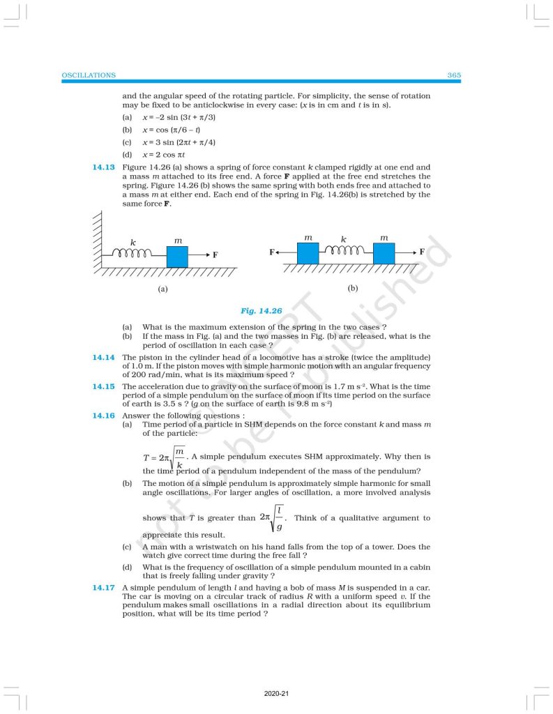 NCERT Book for Class 11 Physics Part 2 – (Chapter 14 – Oscillations)