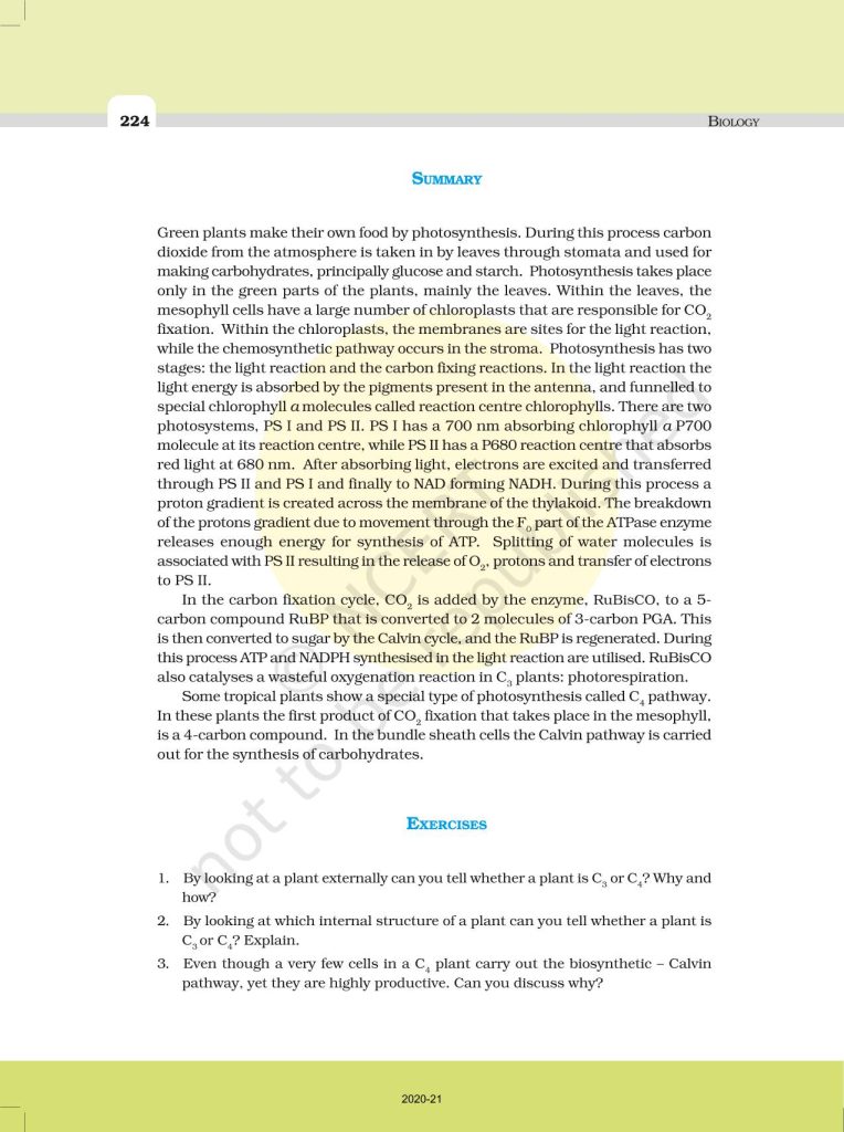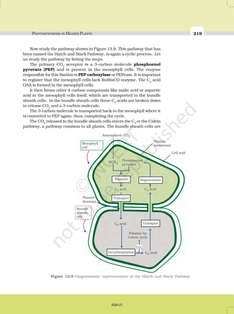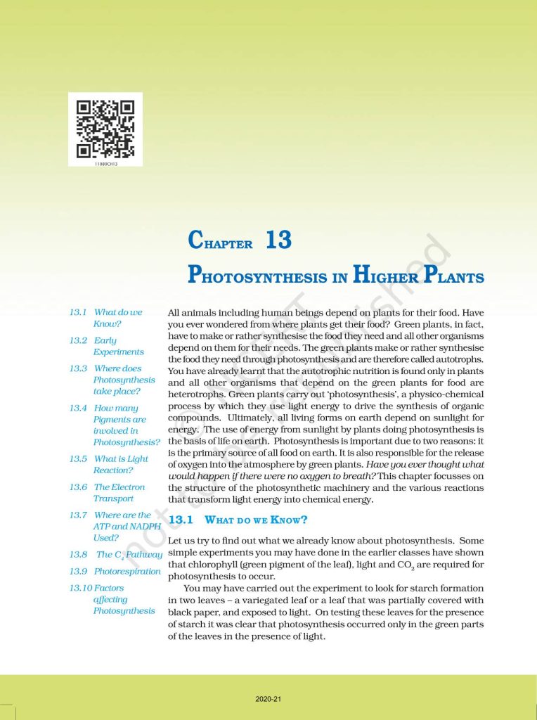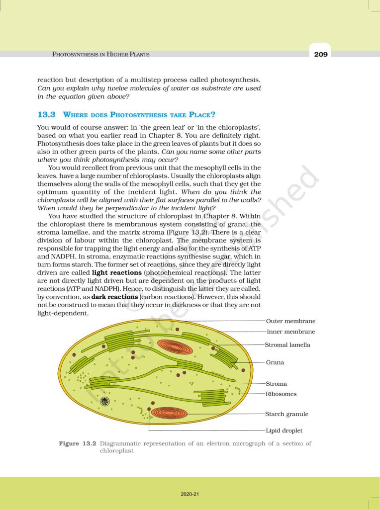 NCERT Book for Class 11 Biology – (Chapter 13 – Photosynthesis In Higher Plants)