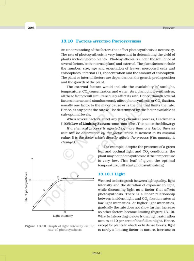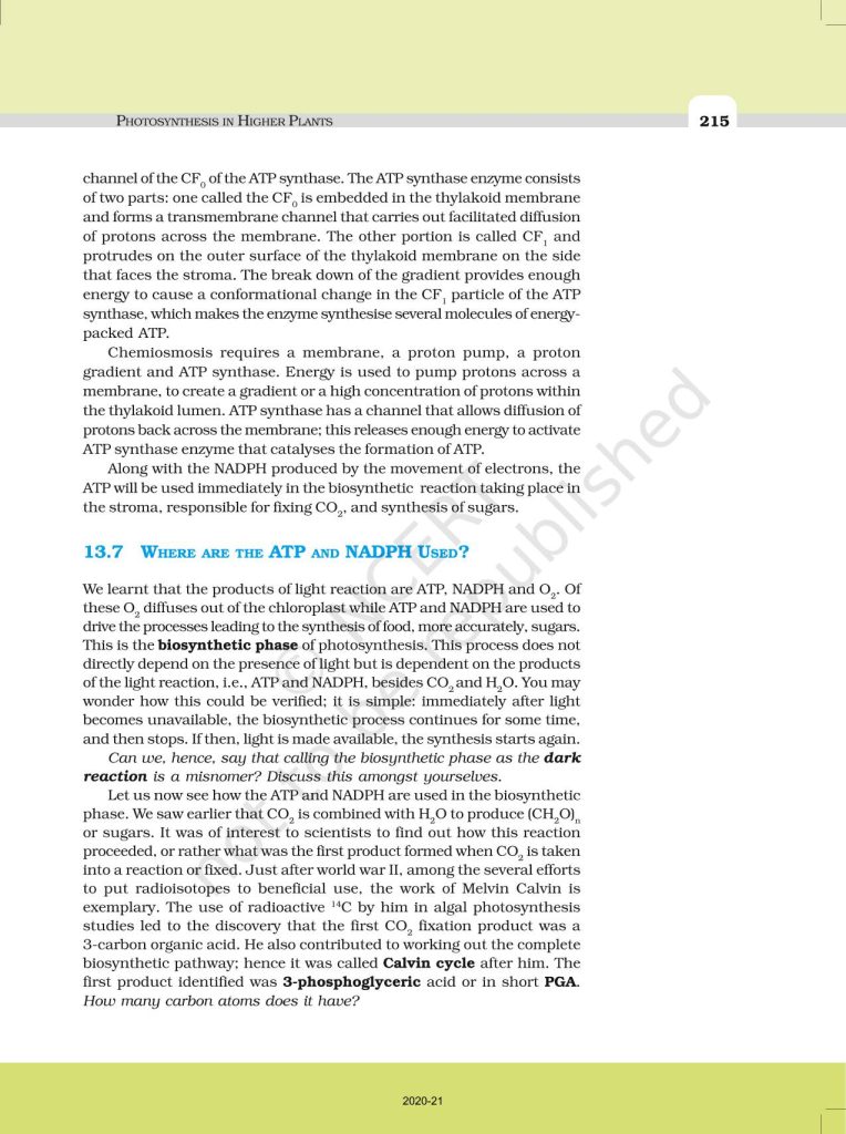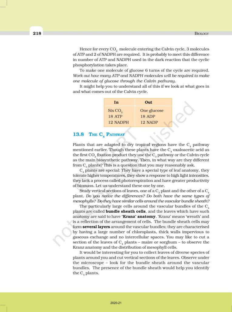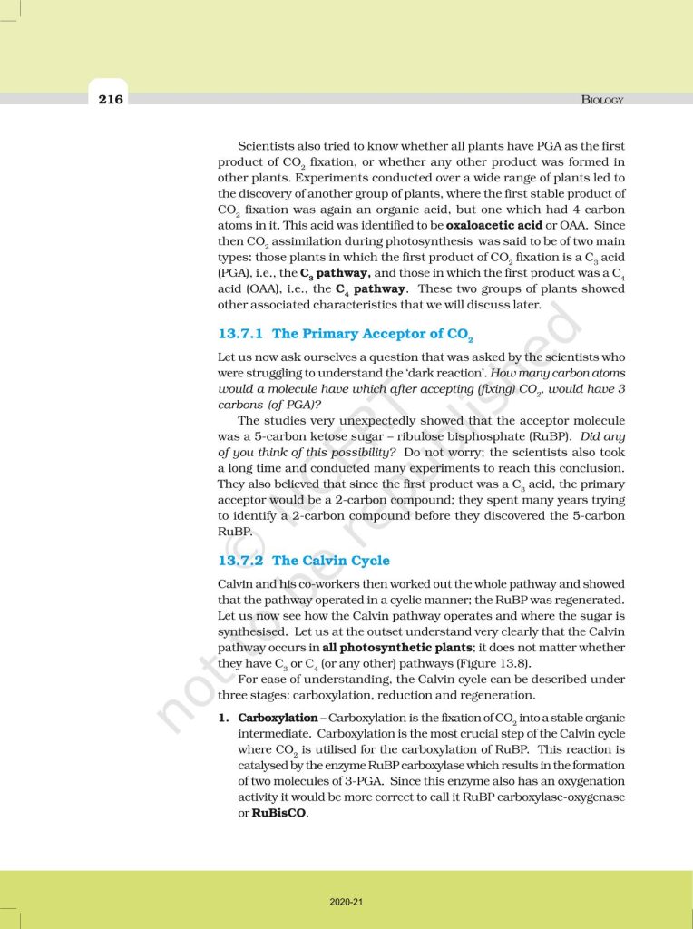 NCERT Book for Class 11 Biology – (Chapter 13 – Photosynthesis In Higher Plants)