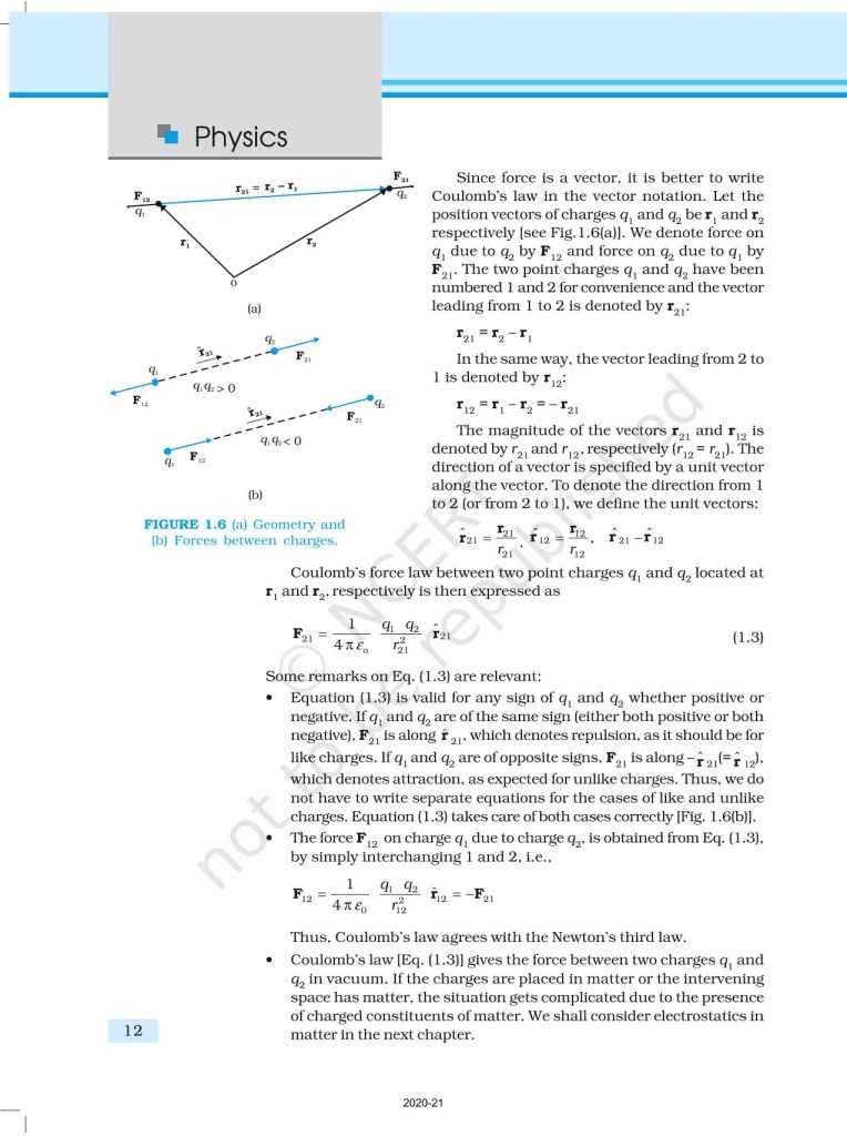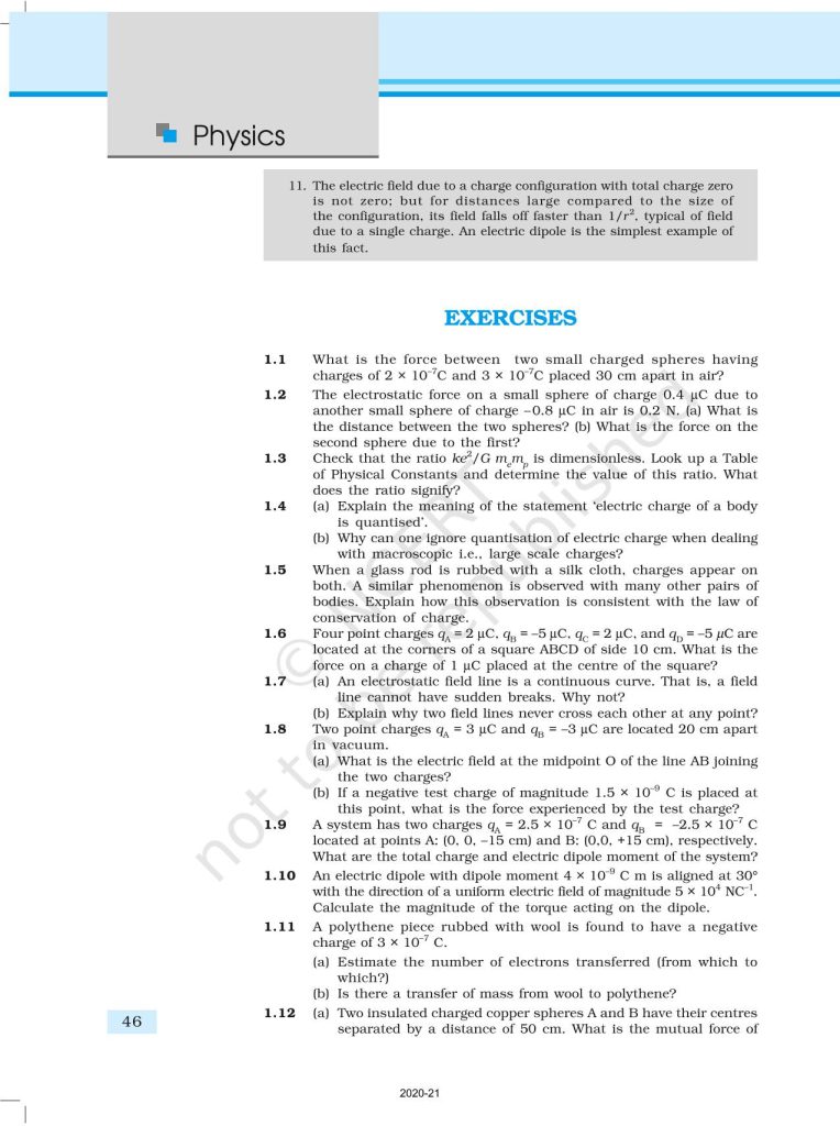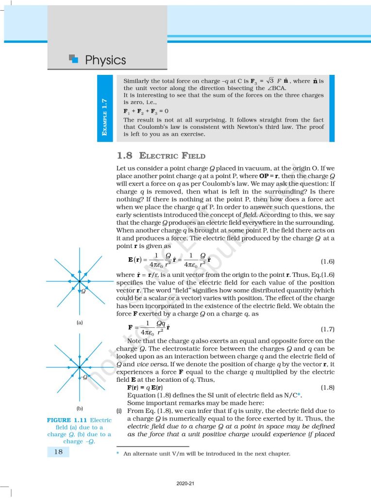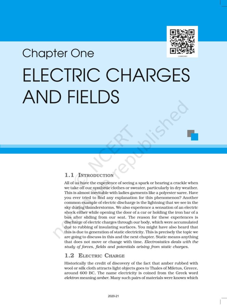NCERT Book for Class 12 Physics Part 1 – (Chapter 1 – Electric Charges and Fields)