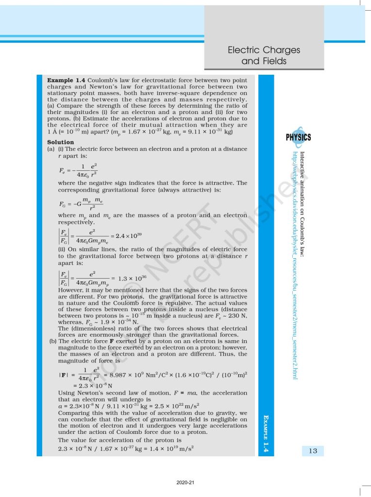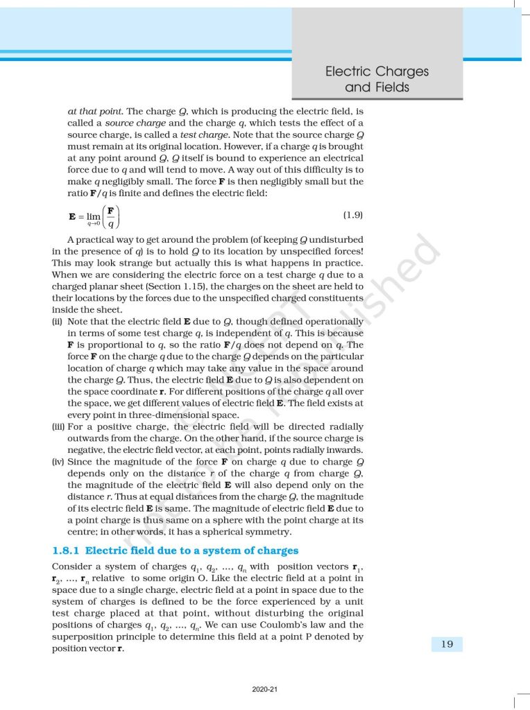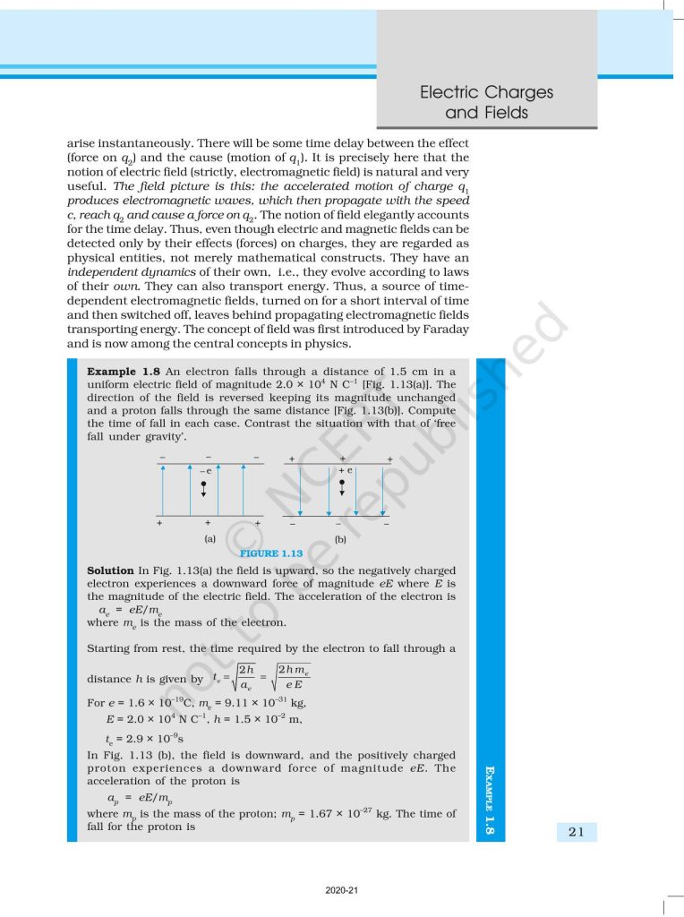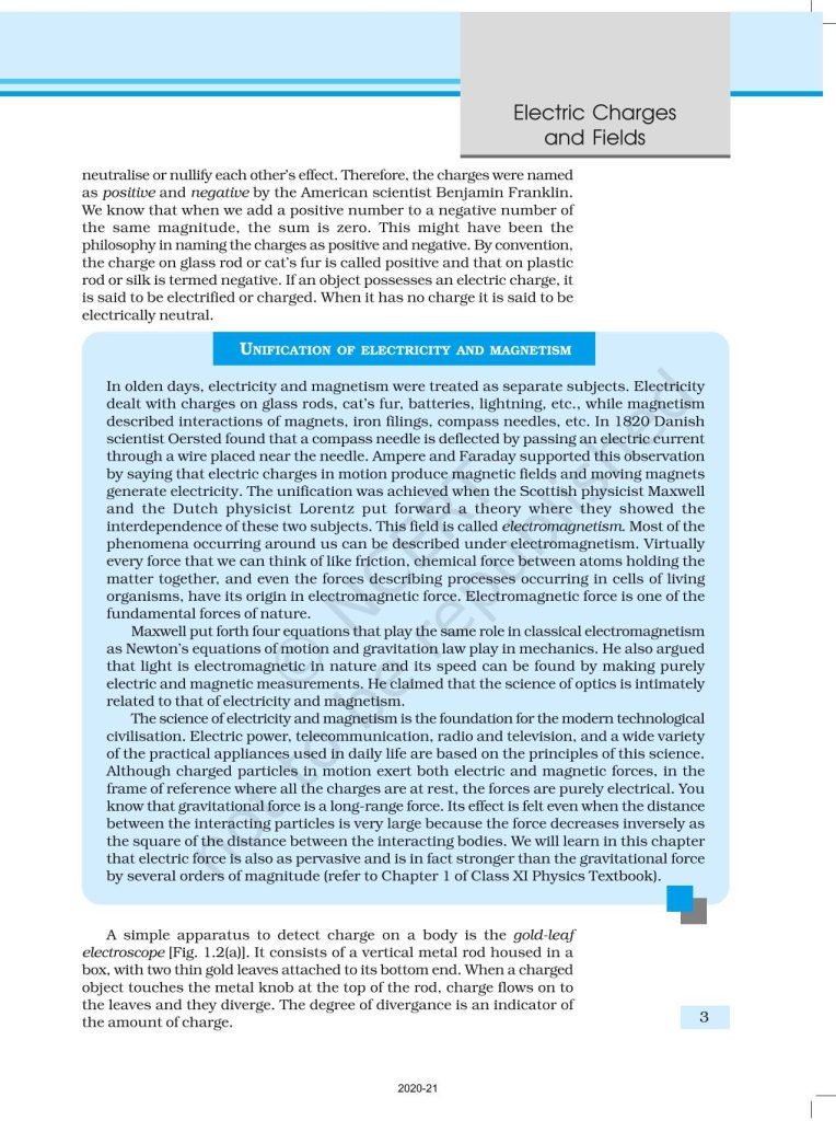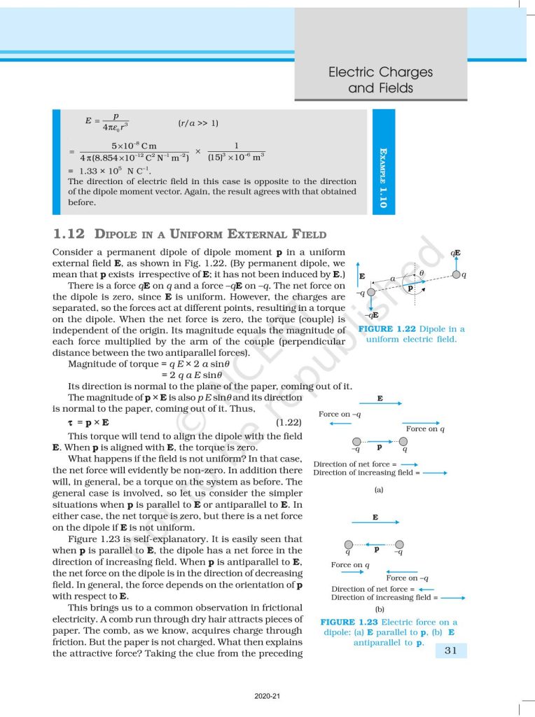 NCERT Book for Class 12 Physics Part 1 – (Chapter 1 – Electric Charges and Fields)