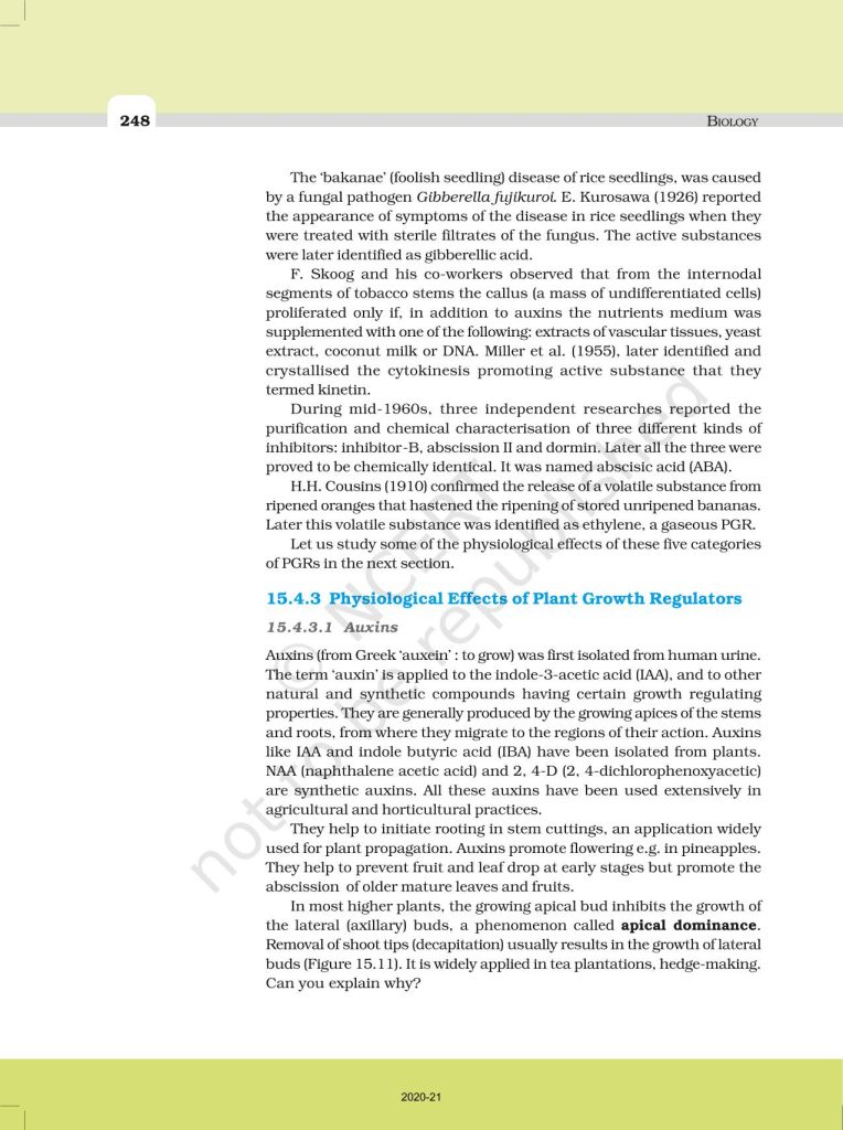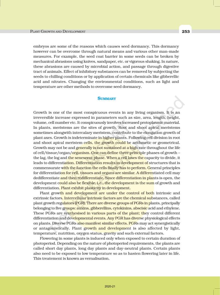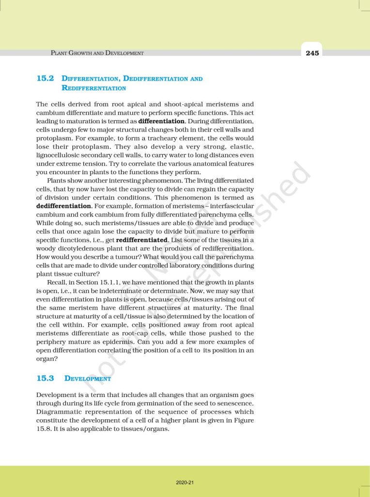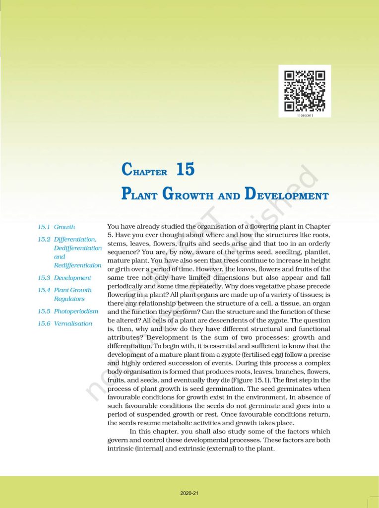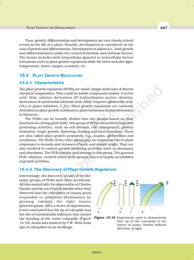 NCERT Book for Class 11 Biology – (Chapter 15 – Plant Growth And Development)