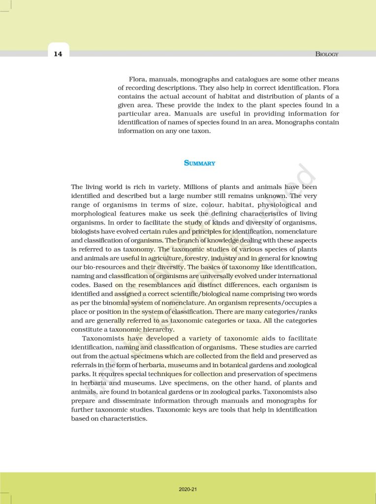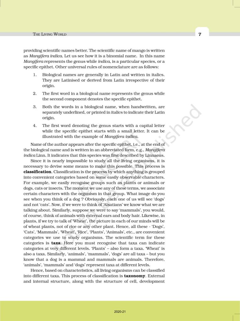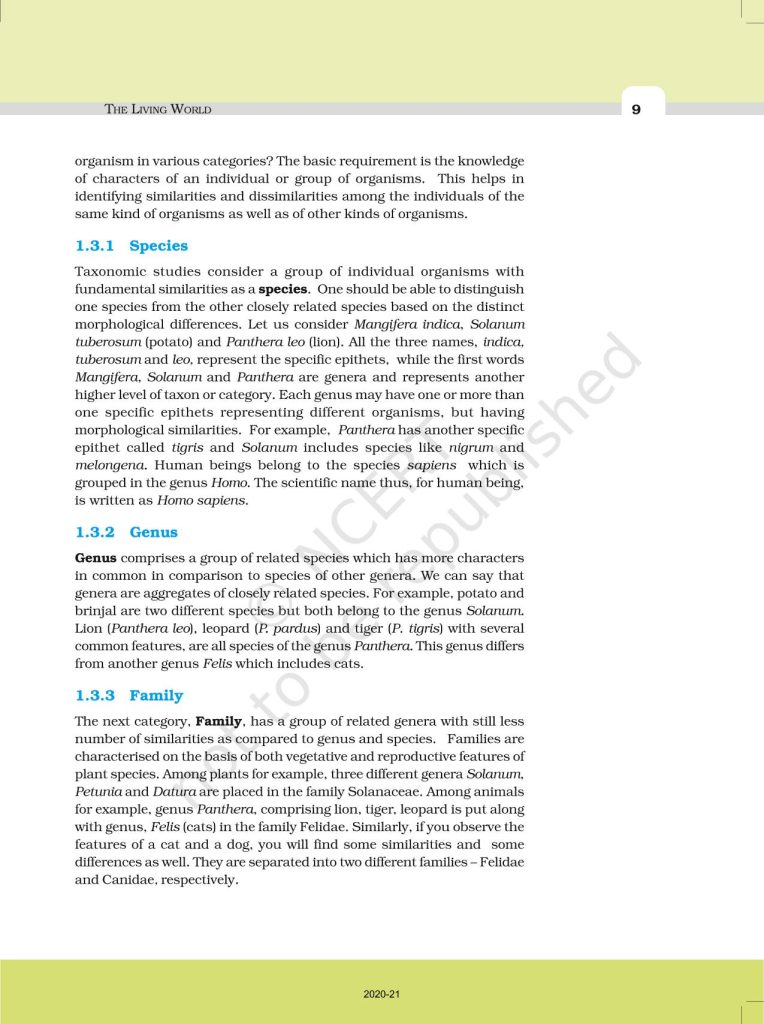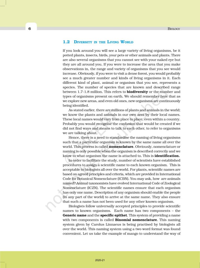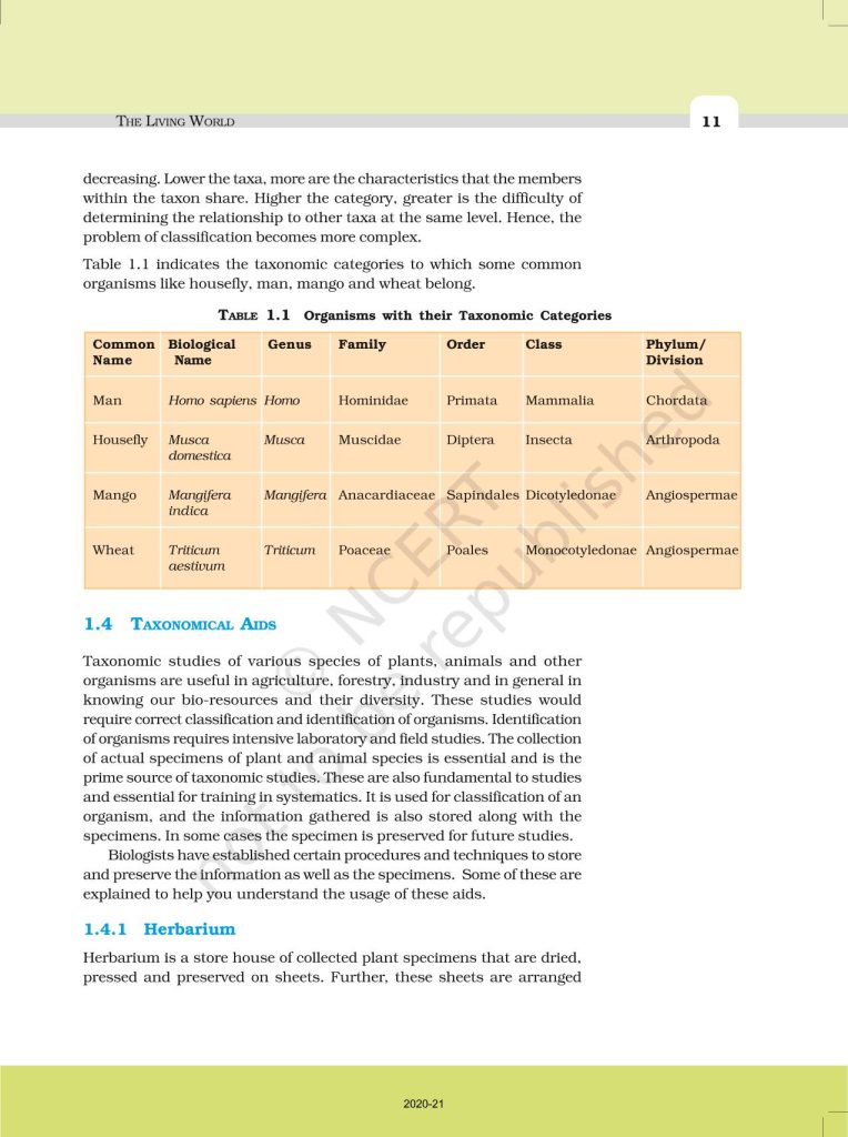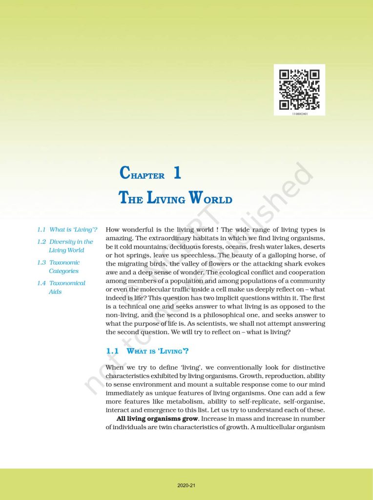 NCERT Book for Class 11 Biology – (Chapter 1 – The Living World)