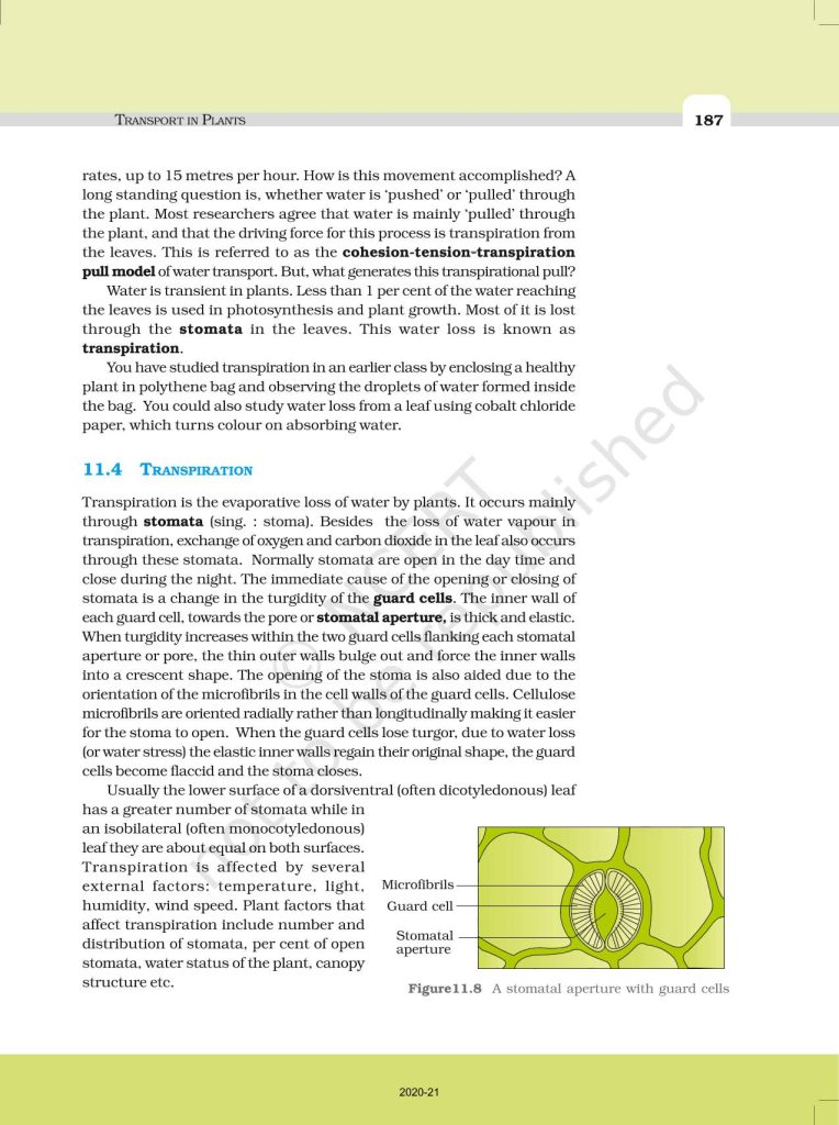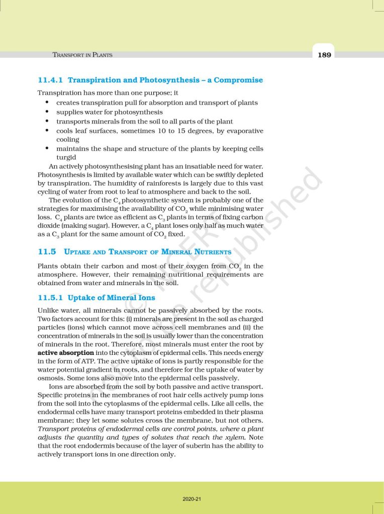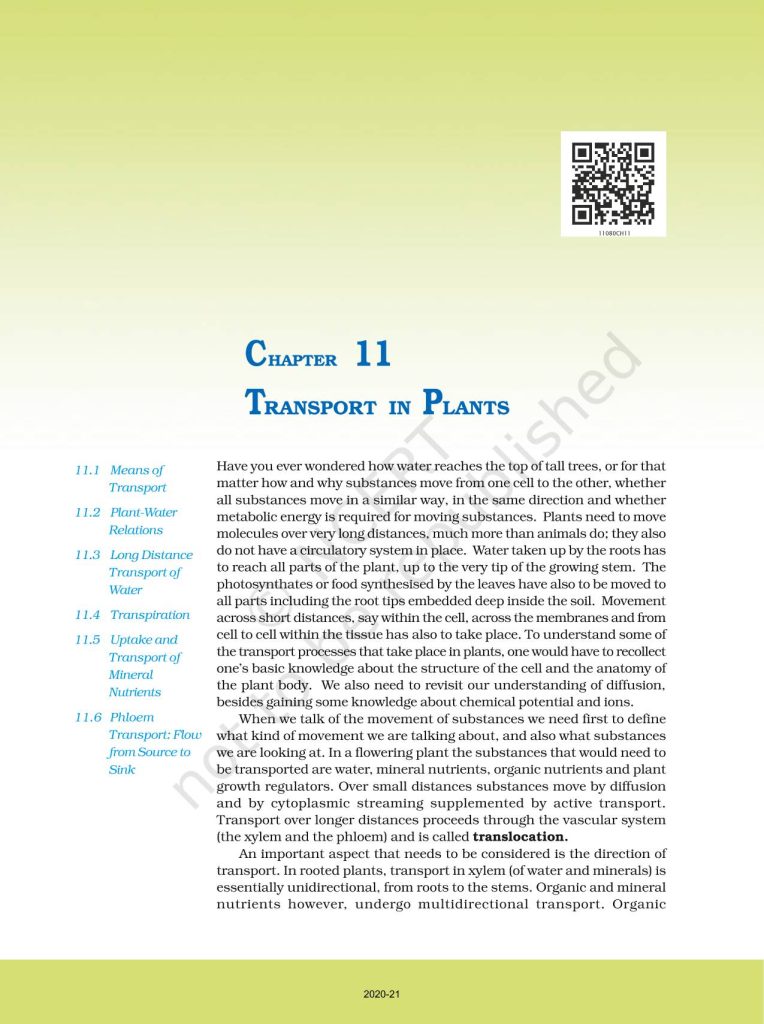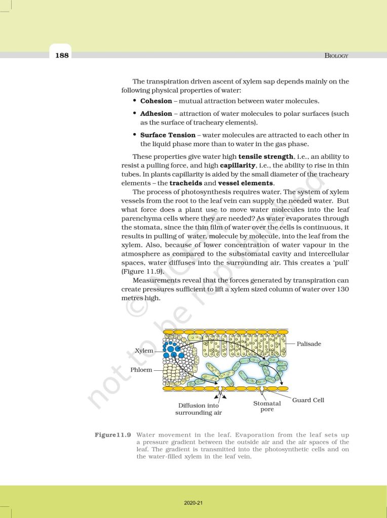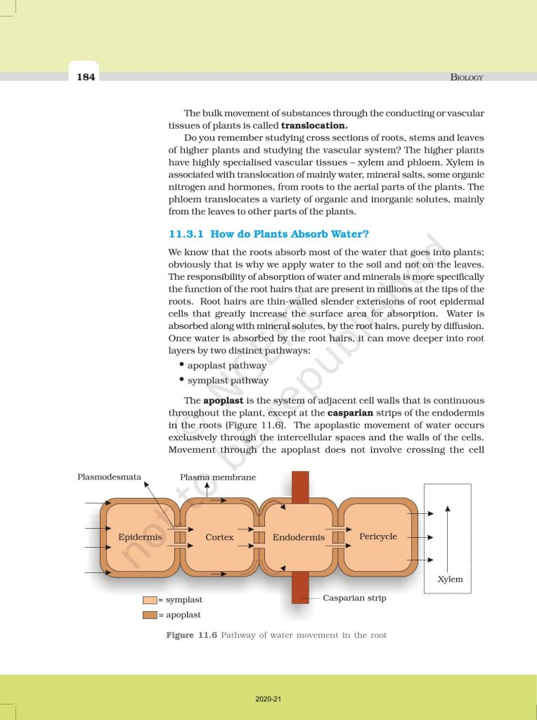 NCERT Book for Class 11 Biology – (Chapter 11 – Transport In Plants)