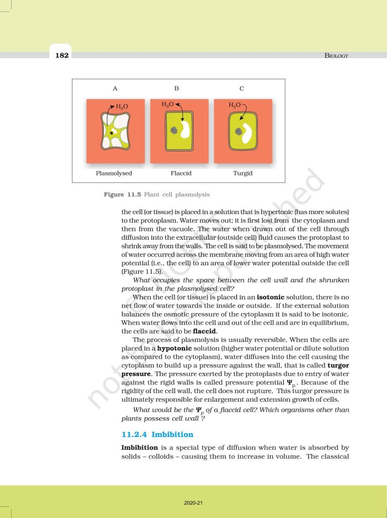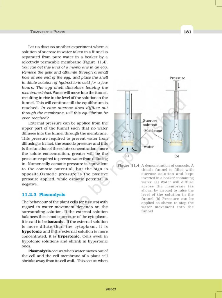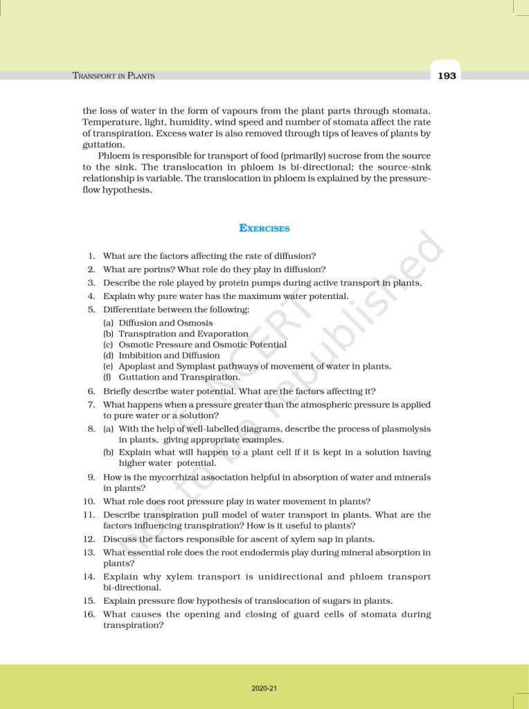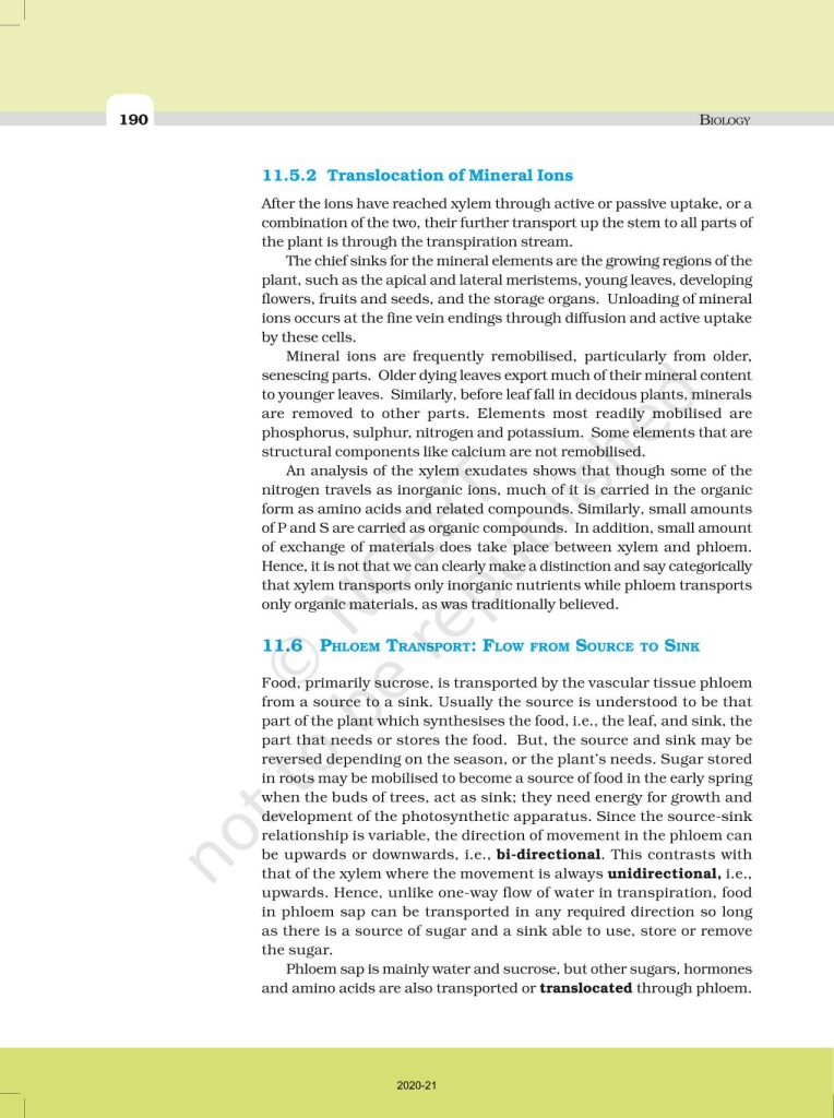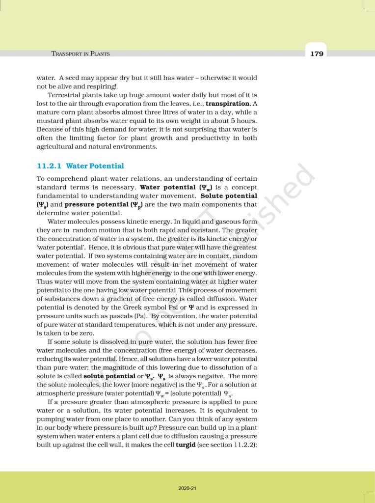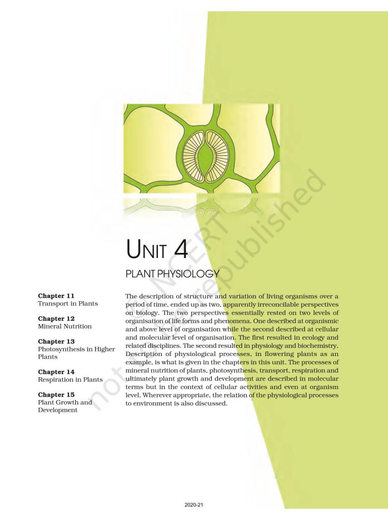NCERT Book for Class 11 Biology – (Chapter 11 – Transport In Plants)