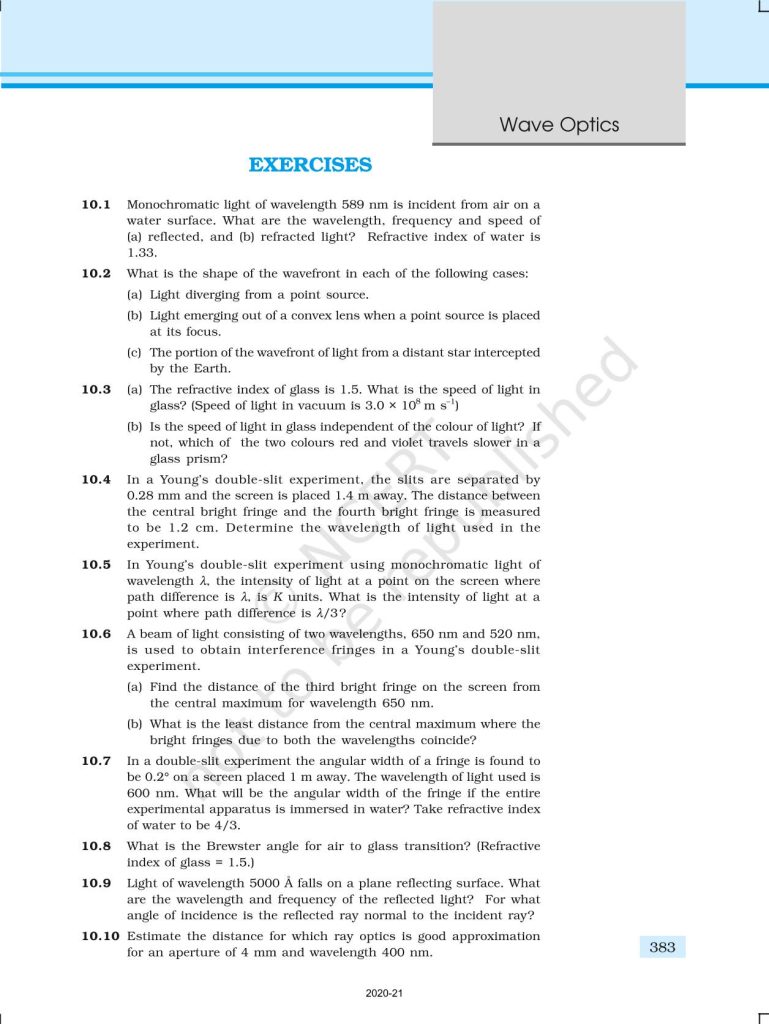 NCERT Book for Class 12 Physics Part 2 – (Chapter 10 – Wave Optics)